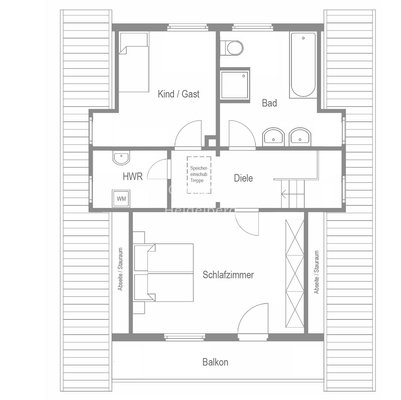 Von der großzügigen und einladenden Diele im Eingangsbereich gelangen Sie über eine stilvolle Holztreppe ins Obergeschoss. Hier befinden sich ein großzügiges Schlafzimmer mit Zugang zum Balkon, ein weiteres Zimmer für Kind oder Gast, das Tageslichtbad mit Dusche und Wanne sowie der Hauswirtschaftsraum für die Waschmaschine.