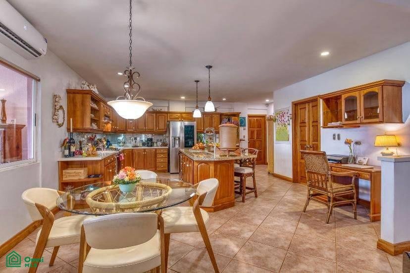 The 5,814 m2 (1,43 acre) lot is completely fenced and usable. The total construction size is 325 m2 (3,498 sq.ft). There’s an abundance of green foliage and exotic fruit trees, all maintained with a 6-zone irrigation system.