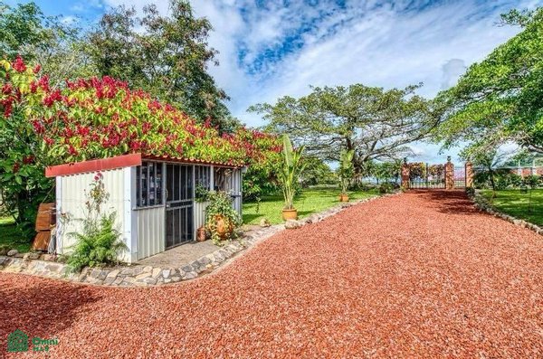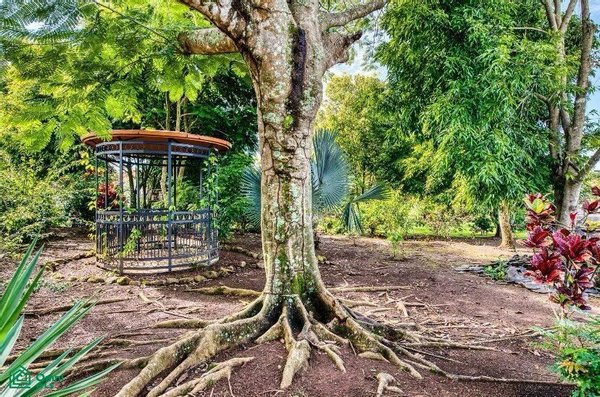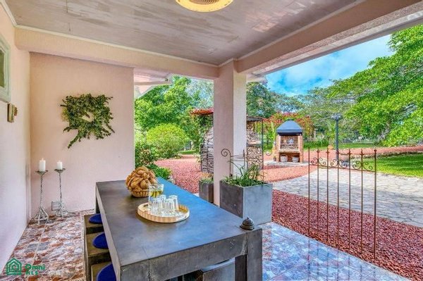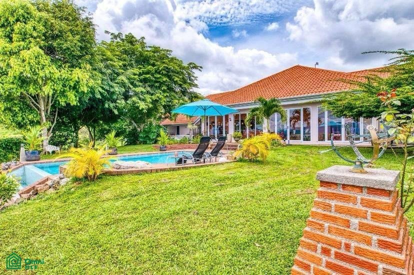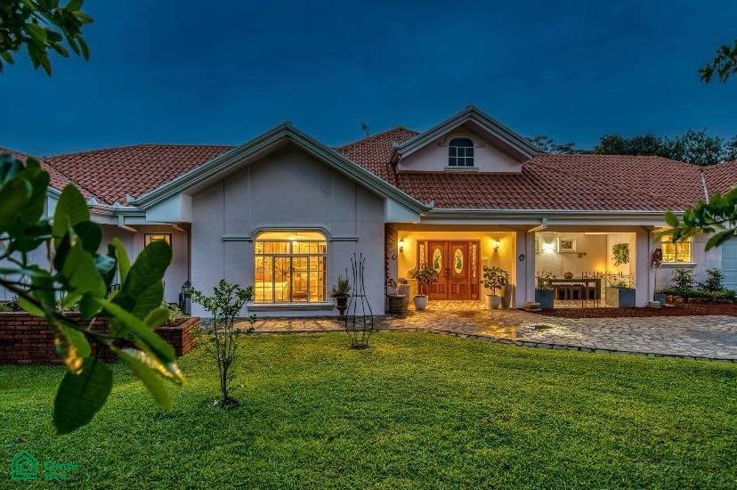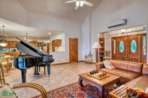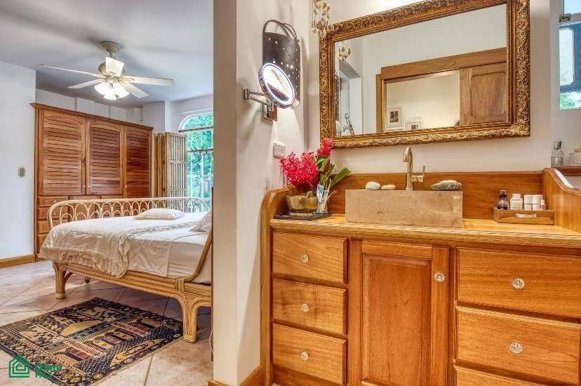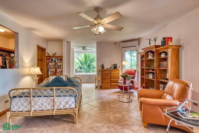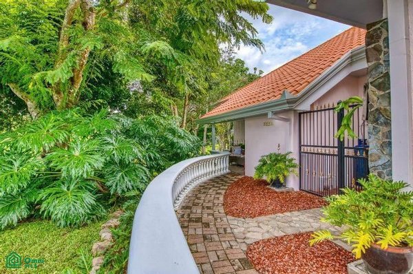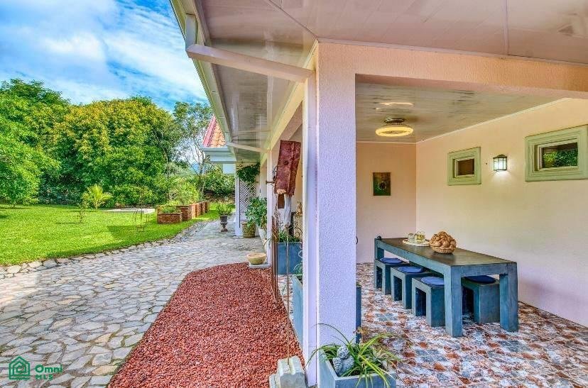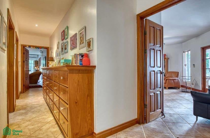 The 5,814 m2 (1,43 acre) lot is completely fenced and usable. The total construction size is 325 m2 (3,498 sq.ft). There’s an abundance of green foliage and exotic fruit trees, all maintained with a 6-zone irrigation system.