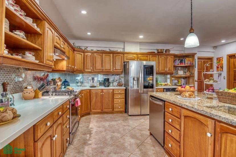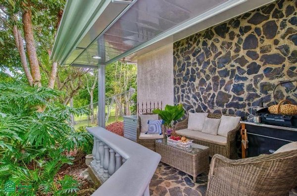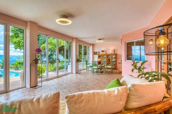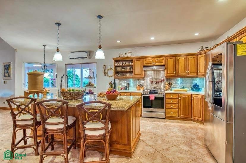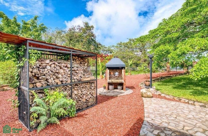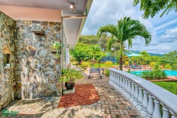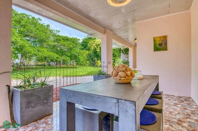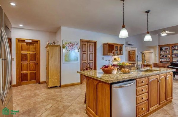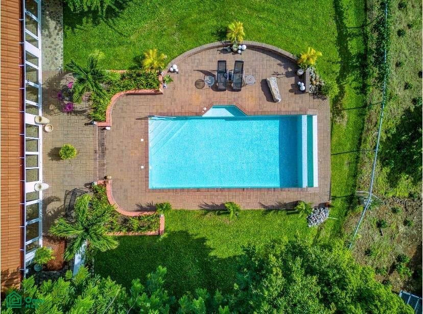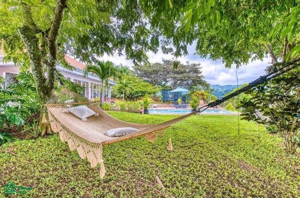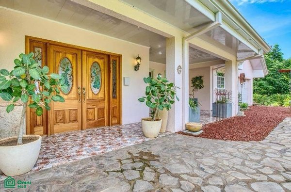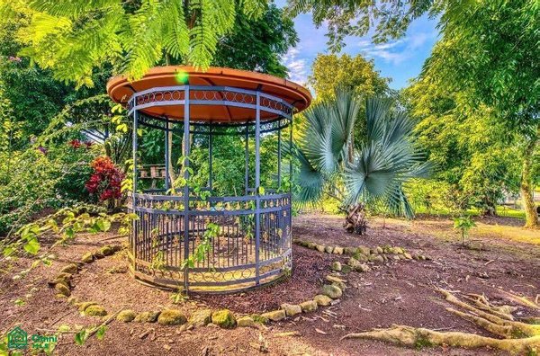 The 5,814 m2 (1,43 acre) lot is completely fenced and usable. The total construction size is 325 m2 (3,498 sq.ft). There’s an abundance of green foliage and exotic fruit trees, all maintained with a 6-zone irrigation system.