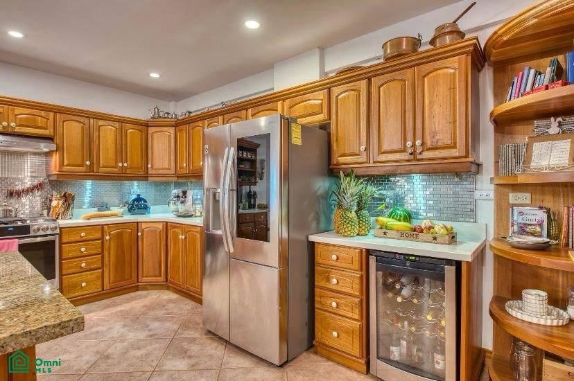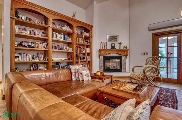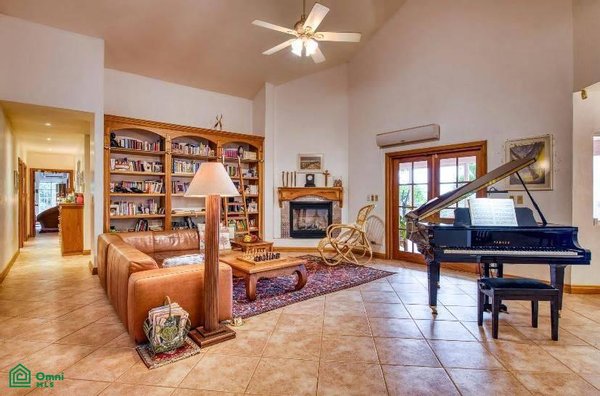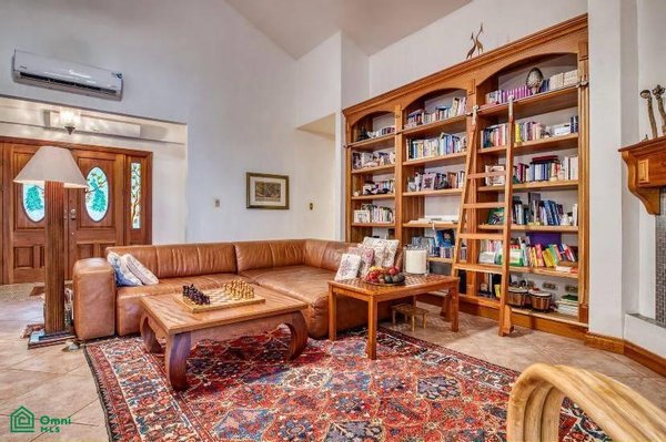 As you walk through the stained-glass double front doors of his beautifully renovated home, the expansive open living areas with soaring vaulted ceilings will leave a lasting impression. One of the dominant features of this space is a library wall,
