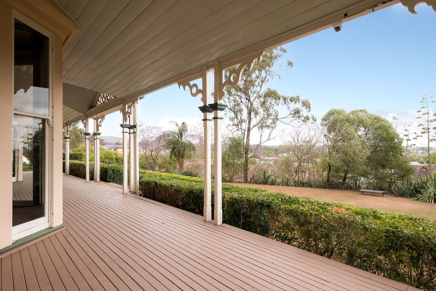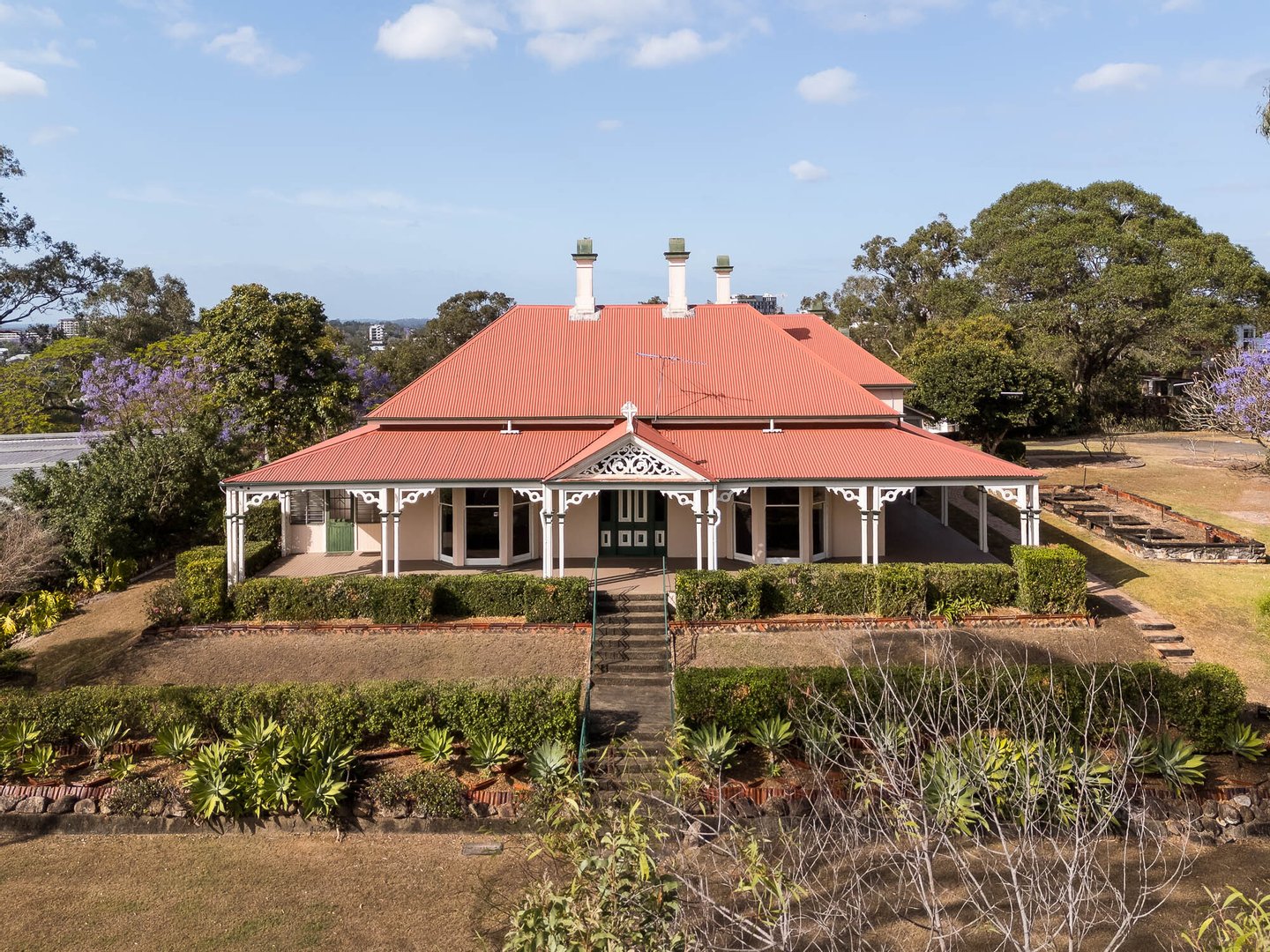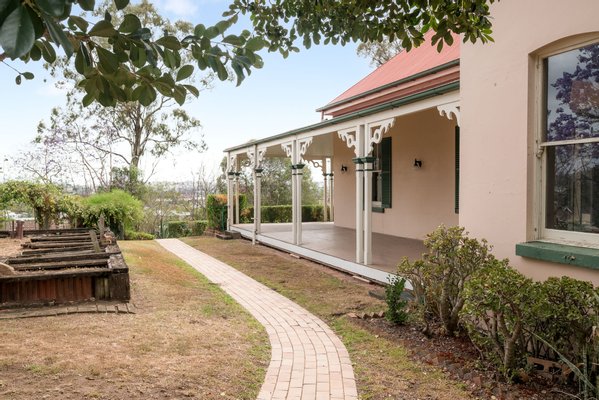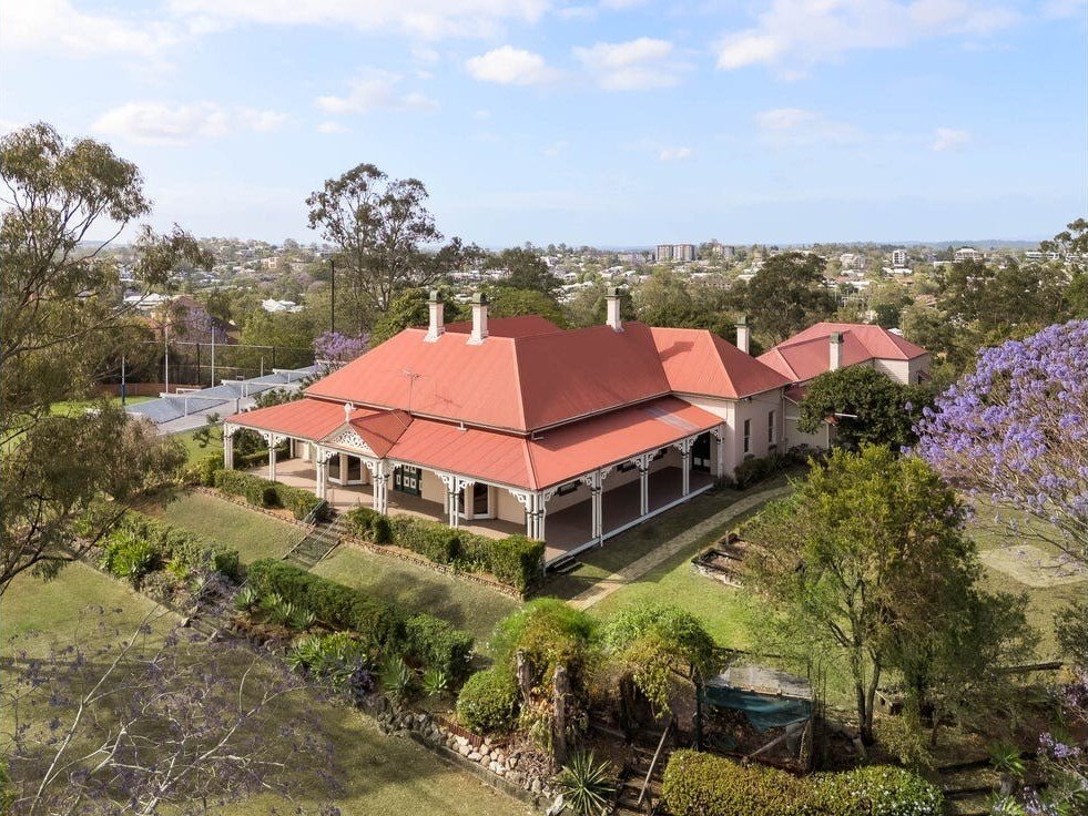 Das ursprüngliche Gehöft aus Ortbeton – eine bemerkenswert frühe und seltene häusliche Verwendung des Materials – ist ein Zeugnis der Handwerkskunst des 19. Jahrhunderts. Prächtige, formelle Räume mit Marmor- und gusseisernen Kaminen, hohen Decken und historischen Tischlerarbeiten öffnen sich zu tiefen Veranden, die den subtropischen Lebensstil widerspiegeln und den Blick auf die Skyline von Brisbane und die fernen Gebirgszüge bieten.