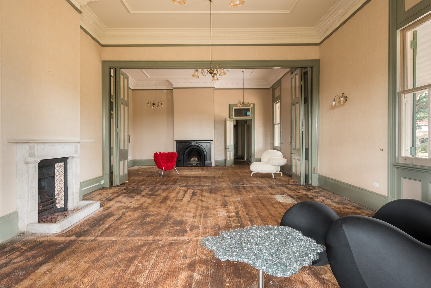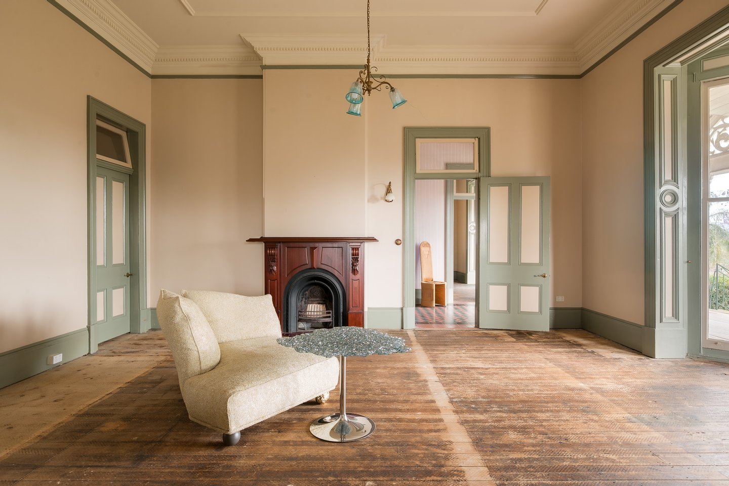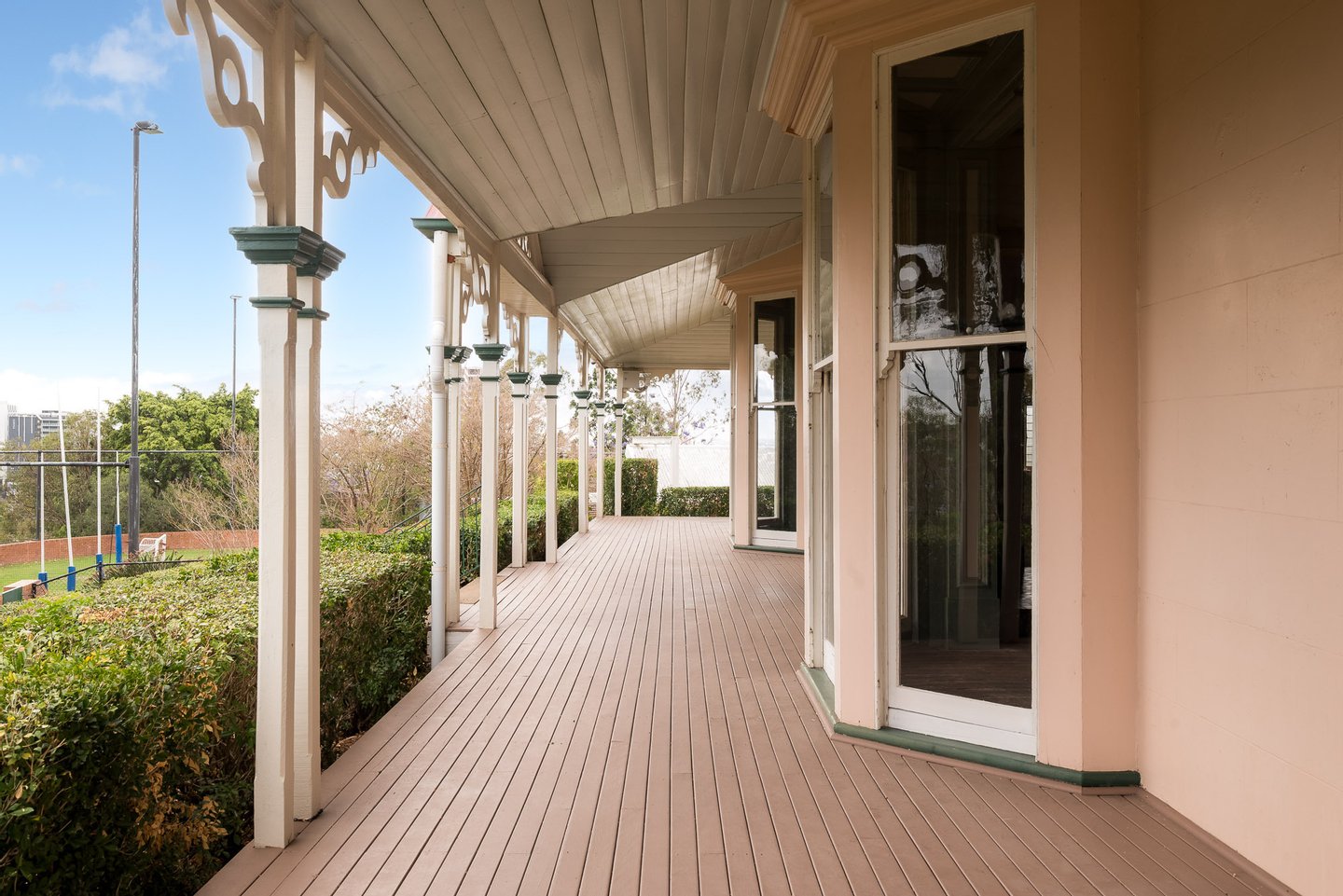 Das ursprüngliche Gehöft aus Ortbeton – eine bemerkenswert frühe und seltene häusliche Verwendung des Materials – ist ein Zeugnis der Handwerkskunst des 19. Jahrhunderts. Prächtige, formelle Räume mit Marmor- und gusseisernen Kaminen, hohen Decken und historischen Tischlerarbeiten öffnen sich zu tiefen Veranden, die den subtropischen Lebensstil widerspiegeln und den Blick auf die Skyline von Brisbane und die fernen Gebirgszüge bieten.