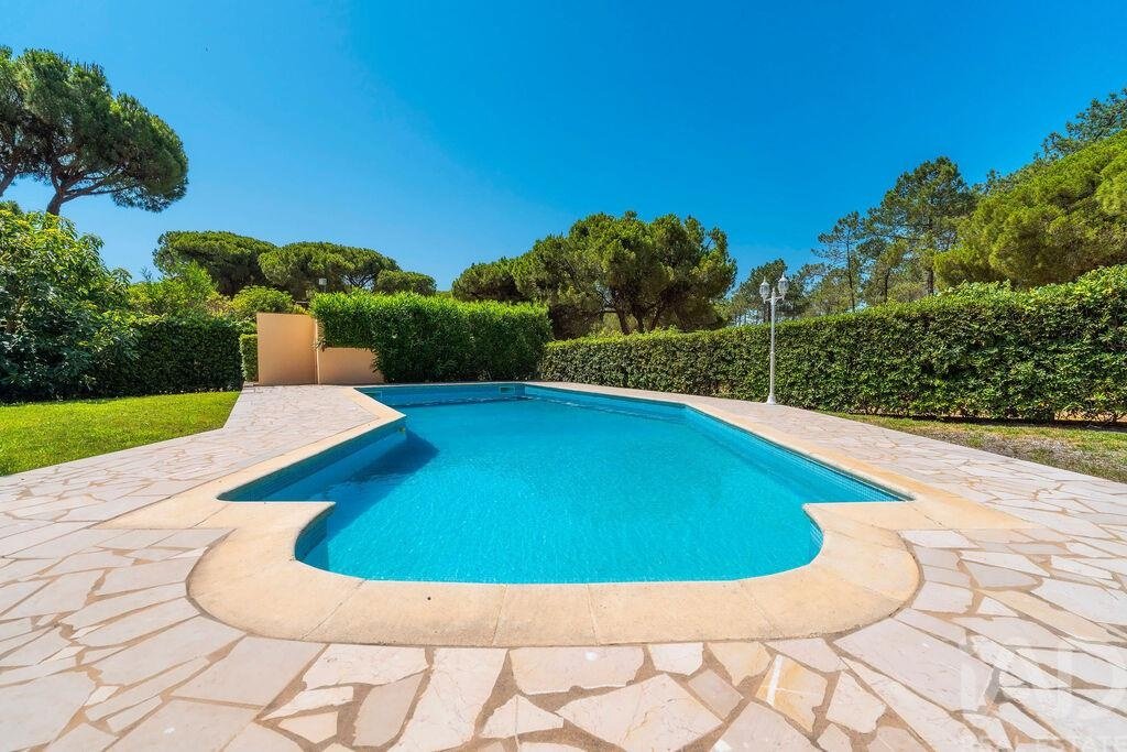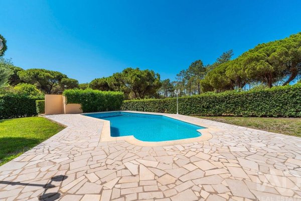 Entdecken Sie in Exklusivität in einer der begehrtesten Gegenden von Vilamoura diese fabelhafte freistehende Villa mit einer Wohnfläche von 364 m2, die auf einem flachen und grünen Grundstück von 1.340 m2 gebaut wurde.
