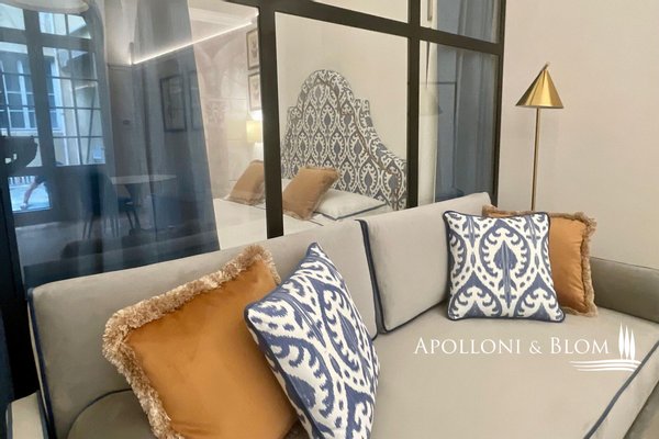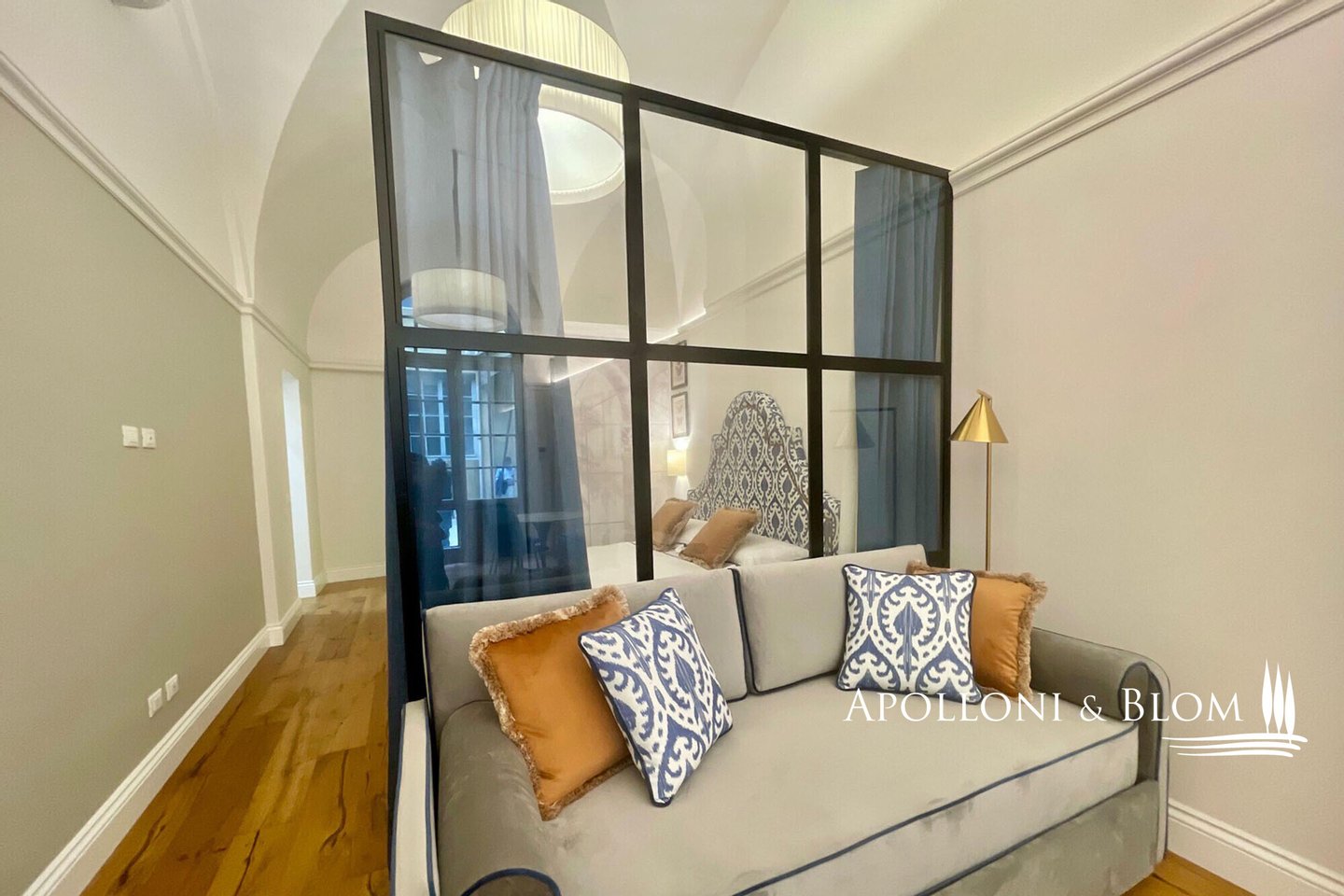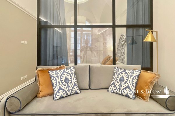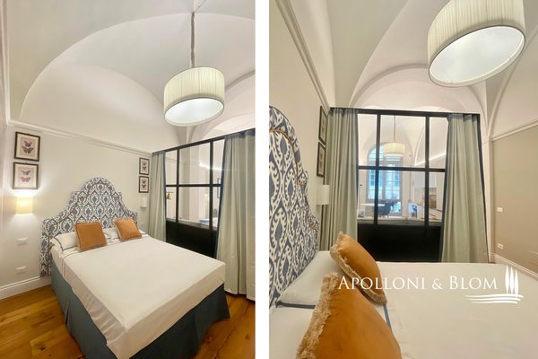 Exklusive Oltrarno-Wohnung mit gewölbten Decken, Marmorverkleidungen und feiner Einrichtung, direkt neben den historischen Boboli-Gärten. Eingebettet in den zeitlosen Charme des Oltrarno, nur wenige Schritte von den Boboli-Gärten und dem Museum La