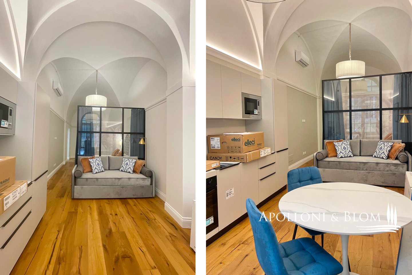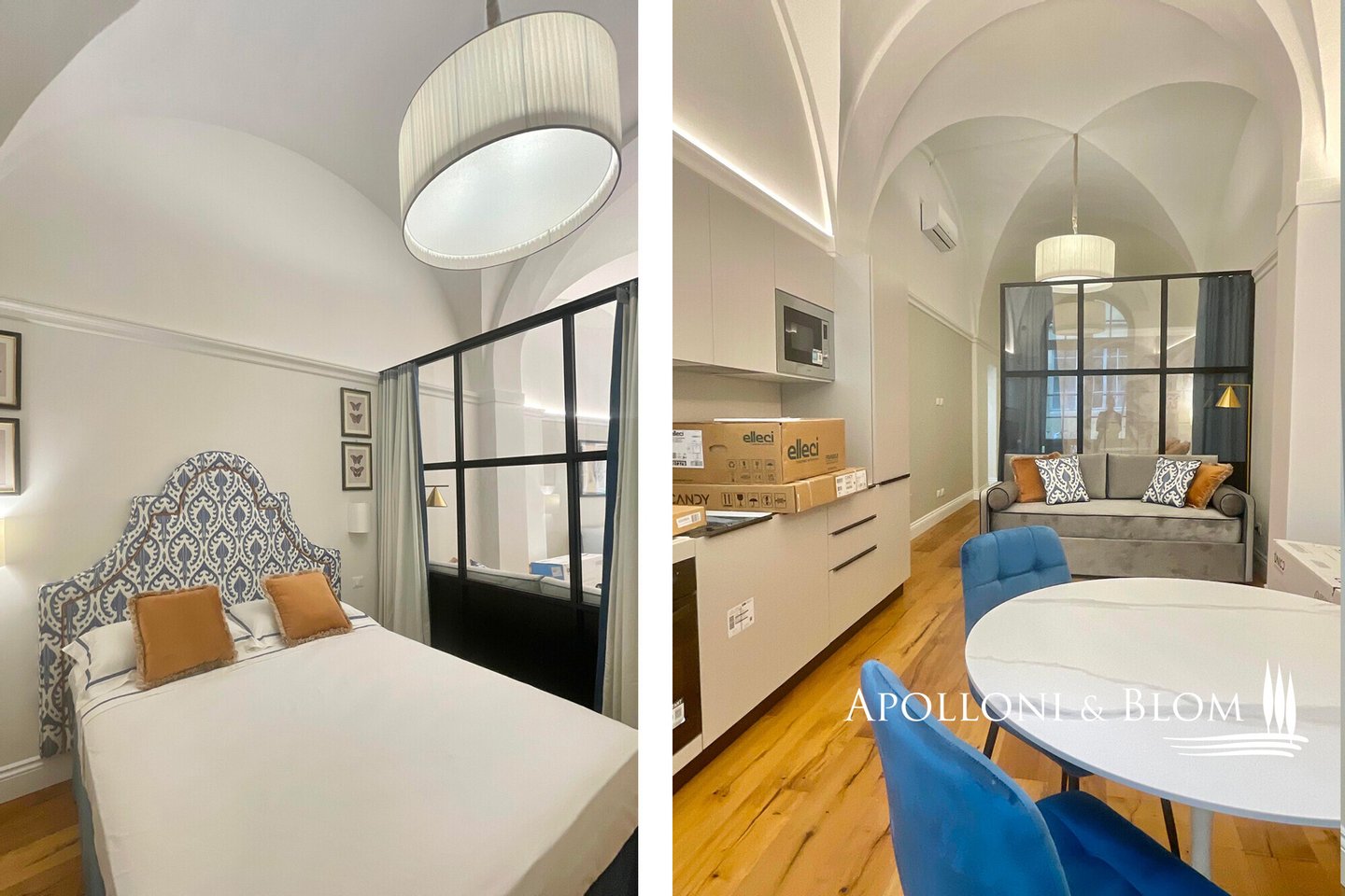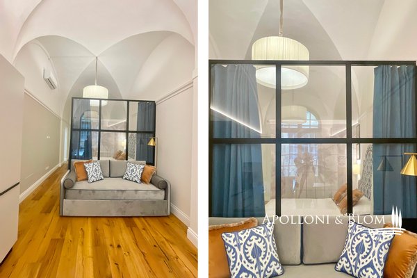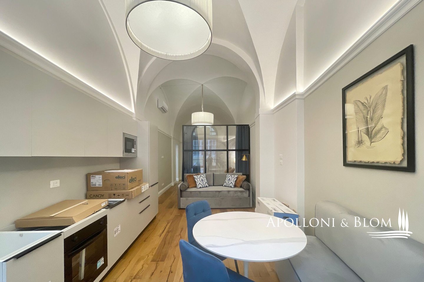 Exklusive Oltrarno-Wohnung mit gewölbten Decken, Marmorverkleidungen und feiner Einrichtung, direkt neben den historischen Boboli-Gärten. Eingebettet in den zeitlosen Charme des Oltrarno, nur wenige Schritte von den Boboli-Gärten und dem Museum La Specola entfernt, ist diese ca. 50 m² große Wohnung ein Juwel von seltener Schönheit, das in einem Palazzo aus dem 15. Die Wohnung, die sich im Erdgeschoss befindet und von einem privaten Innenhof aus zugänglich ist, wurde komplett restauriert und zelebriert das Erbe der Renaissance durch prächtige Kreuzgewölbe, die mit LED-Beleuchtung ausgestattet sind. Das Hauptwohnzimmer öffnet sich als dramatisches Volumen, in dem das minimalistische Küchendesign und der warme Parkettboden ein gemütliches und anspruchsvolles Ambiente schaffen. Der architektonische Einfallsreichtum manifestiert sich in der raffinierten Glaswand mit Industrieprofilen, die den Wohnbereich von der Master-Suite trennt, ohne den visuellen Fluss und das natürliche Licht zu unterbrechen. Der Schlafbereich ist mit einer Tapete mit botanischen Motiven verziert, die an die nahe gelegene Specola erinnert. Das Badezimmer ist mit großen Platten aus fachmännisch geädertem Marmor ausgekleidet, die eine geräumige, begehbare Dusche einrahmen. Eine funktionelle Garderobe vervollständigt die Wohnung, während neue Armaturen und eine integrierte Klimaanlage modernsten Komfort in einer Wohnung von unvergleichlichem historischem Wert gewährleisten.