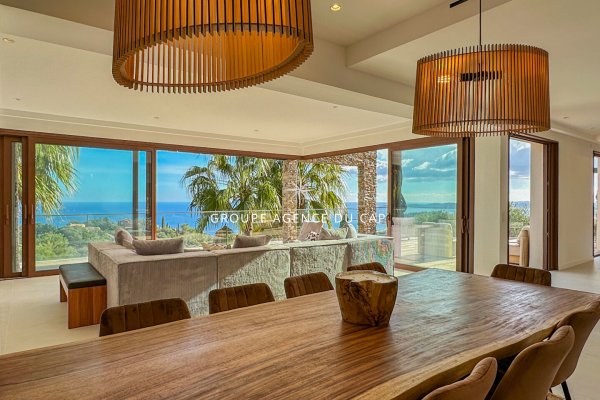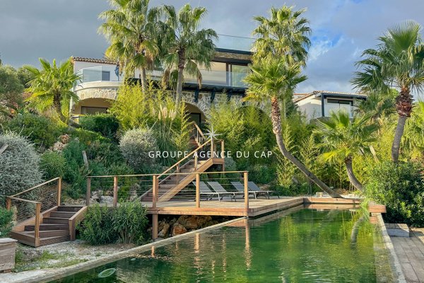 ZUM VERKAUF in SAINTE-MAXIME, innerhalb eines Privatanwesens, einer Immobilie mit zwei zeitgenössischen Villen: Auf einem sonnenverwöhnten Grundstück gelegen, besteht diese zeitgenössische Immobilie aus zwei Villen mit atemberaubendem Blick auf das Mittelmeer und den Golf von Saint-Tropez. Die Hauptvilla (300 m²) beeindruckt mit ihrem geräumigen Wohnzimmer, das auf eine meerblickende Terrasse ausgerichtet ist, ihrer gehobenen Küche, ihrem raffinierten Weinkeller und ihrer Mastersuite mit Umkleideraum und einem spaähnlichen Badezimmer. Auf der Gartenebene erweitern drei Schlafzimmer mit eigenem Bad, ein TV-/Fitnessbereich und direkter Zugang zum Salzwasserbecken mit seinem Sandstrand den mediterranen Lebensstil. Die völlig unabhängige Gästevilla vereint Privatsphäre und Eleganz mit drei Schlafzimmern, großen Terrassen mit Meeresblick, eigenem Swimmingpool und einem Pétanque-Hof. Zwei getrennte Tore, zeitgenössische Architektur und außergewöhnliche Panoramablicke machen dieses Anwesen zu einer seltenen Adresse für dieses prestigeträchtige Anwesen. Innenraumfotos und Energieeffizienzzertifikate werden vorbereitet.
