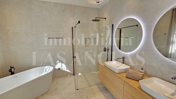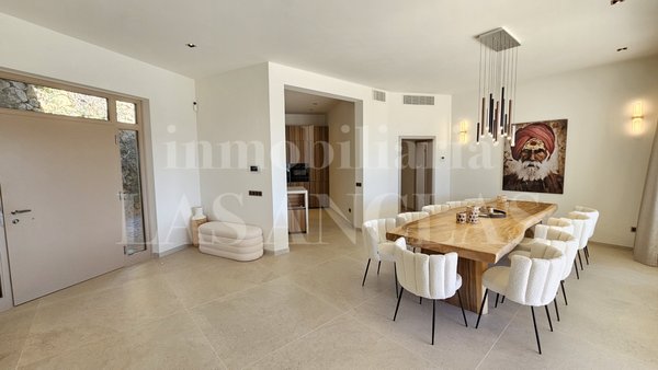 Bei der Renovierung der Villa, deren Grundriss sich durch Großzügigkeit auszeichnet, wurde ein zeitgemäßer und eleganter Stil mit hellen Farbtönen für den Innenbereich gewählt, der perfekt harmoniert mit dem authentisch mediterranen Flair der Außenanlage, deren Fassaden größtenteils mit erstklassigem Naturstein verkleidet wurden.