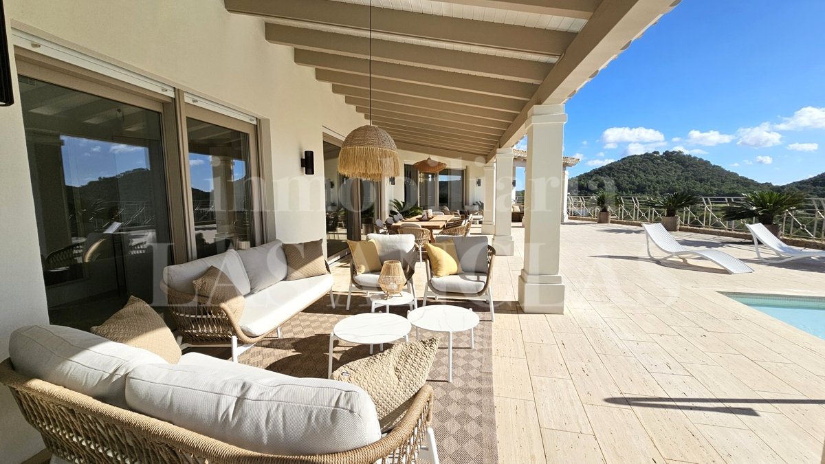 In privilegierter und bewachter Lage zwischen Jesús und dem einzigen Golfplatz präsentiert sich diese großzügige und komplett sanierte Villa in neuem Glanz.