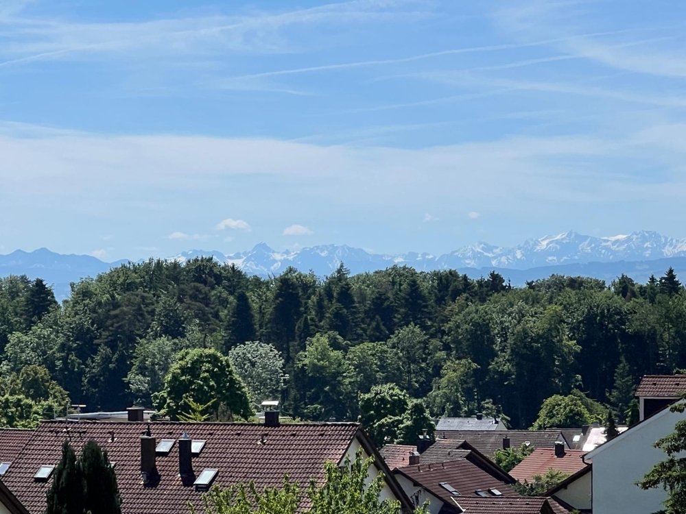 Genießen sie die herrliche Fernsicht auf die Berge und teilweise auf den Bodensee von dort.
