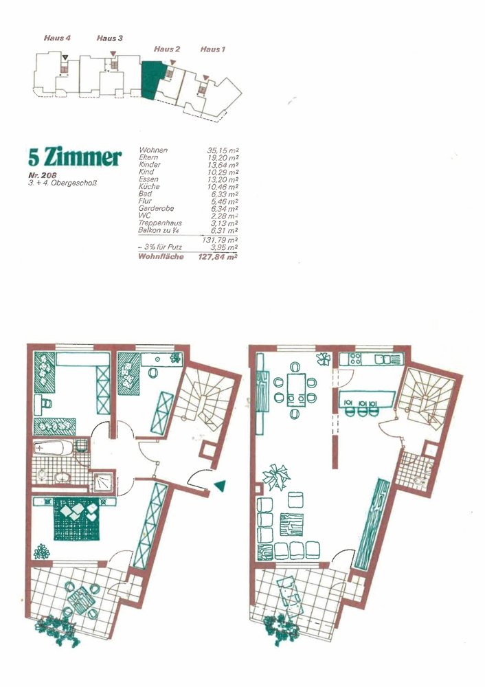 Diese helle und großzügige 4-5 Zimmer-Wohnung verfügt über insgesamt ca. 127 m² Wohnfläche verteilt auf 2 Etagen. In der 1. Wohnetage befinden sich 3 Schlafzimmer mit Zugang zur Loggia, ein modernes Badezimmer und der Eingangsbereich mit Zugang in die obere Etage. Über die halb-gewendelte Treppe gelangen Sie in die 2. Wohnetage, in der sich das große Wohnzimmer befindet mit dem angrenzenden Esszimmer aktuell offen gestaltet. Der weitere Balkon ist von dort direkt zu erreichen.