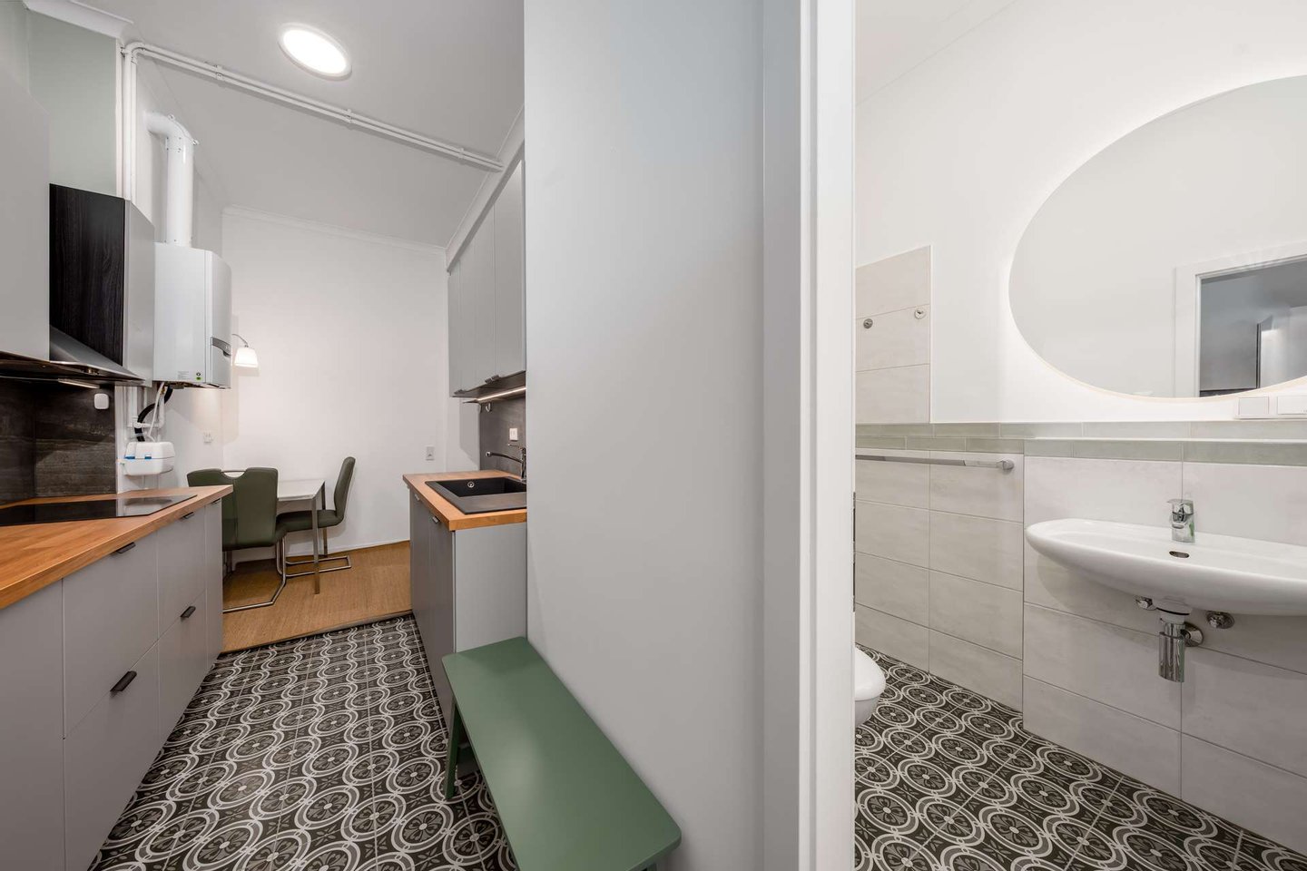 Im Zuge der Sanierung wurde die gesamte Elektrik inklusive Steckdosen, Schalter und FI-Schutzschalter erneuert. Die Holzkastenfenster der Wohnräume erhielten neue 2+1-Verglasungen und frische Dichtungen, während in Küche und Bad moderne, dreifach verglaste Fenster eingebaut wurden. Auch die Wohnungstür wurde energetisch sowie sicherheitstechnisch überarbeitet. Innen überzeugt die Wohnung durch hochwertiges Echtholz-Parkett in Kombination mit modernen Fliesenformaten, die ein harmonisches und zeitgemäßes Wohnambiente schaffen.
