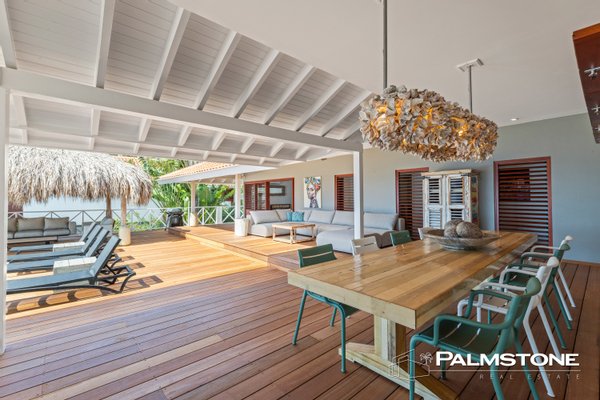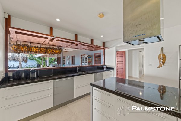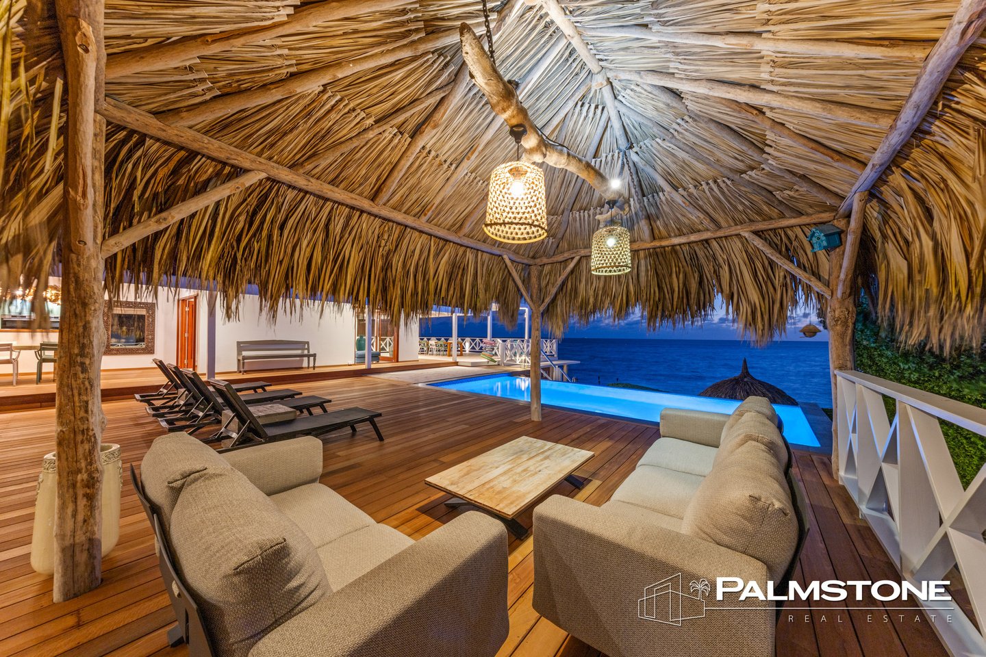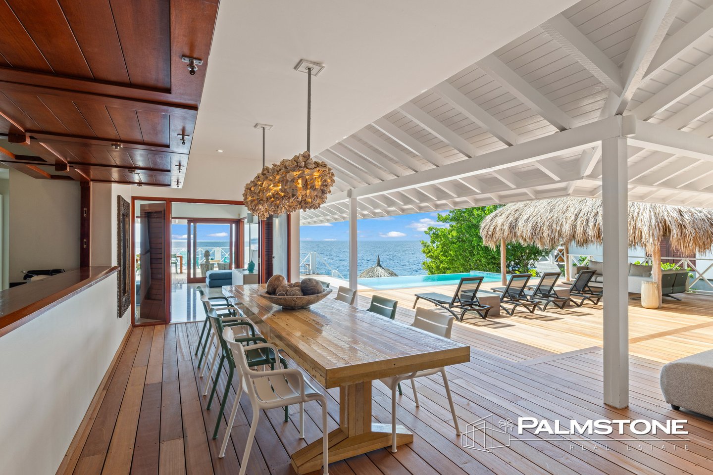 Noch näher am Wasser befindet sich ein stilvolles Gästerefugium mit zwei zusätzlichen Schlafzimmern und einer privaten Cocktailbar – die perfekte Kulisse für Sonnenuntergangstreffen, intime Abende oder ein ruhiges Getränk, während sich der Himmel über die Karibik verwandelt.