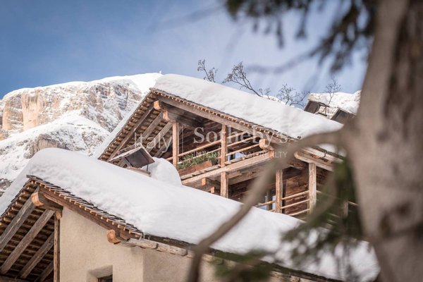 In Arabba, einer der exklusivsten Orte des Sellaronda, steht dieses außergewöhnliche Chalet, das in unmittelbarer Nähe der Skipisten liegt und eine ideale Position bietet, um die Berge in vollen Zügen zu erleben.