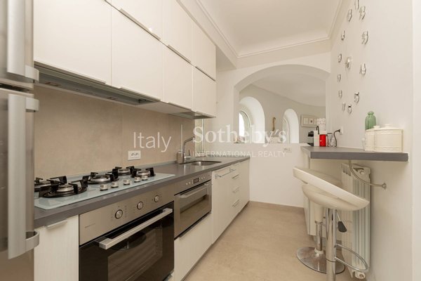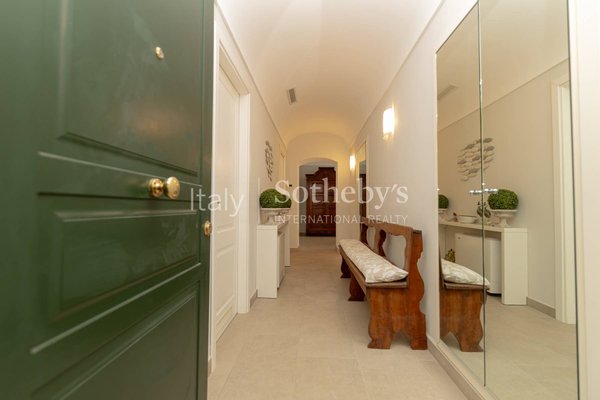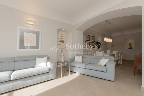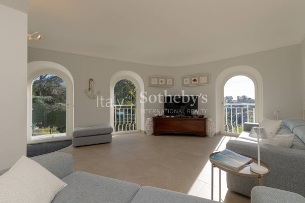 The property stands out for its privileged position within the villa, effectively functioning as an independent home with its own driveway gate leading directly into the private garden. Surrounded by greenery and tranquility, it also offers the possibility of reaching the beaches of San Michele with a pleasant short walk. Recently renovated, the apartment overlooks the garden from a raised ground floor, enhanced by charming south-facing arches that open onto views of the surrounding vegetation and the sea.