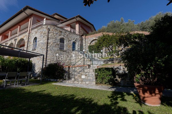 On the hill of San Michele di Pagana, a renowned village on the Riviera between Rapallo and Santa Margherita Ligure, this charming independent apartment with a large private garden is set within a recently renovated villa featuring a swimming pool and sea view.