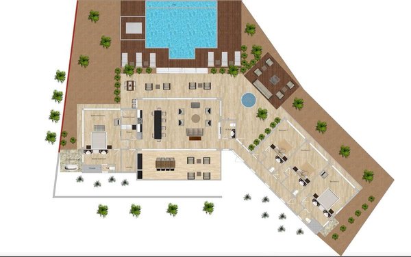 Auch die Außenbereiche sind beeindruckend: Sie verfügen über eine geflieste Terrasse mit schattigen Sitzgelegenheiten, einen 16 x 30 großen Infinity-Pool, einen unterirdischen Jacuzzi, einen überdachten Pavillon und drei Außenduschen, die alle so positioniert sind, dass sie den Meeresblick und die Inselbrise maximieren.