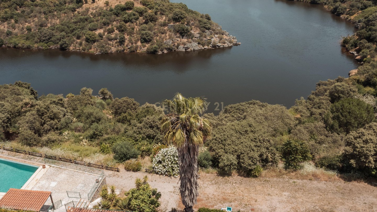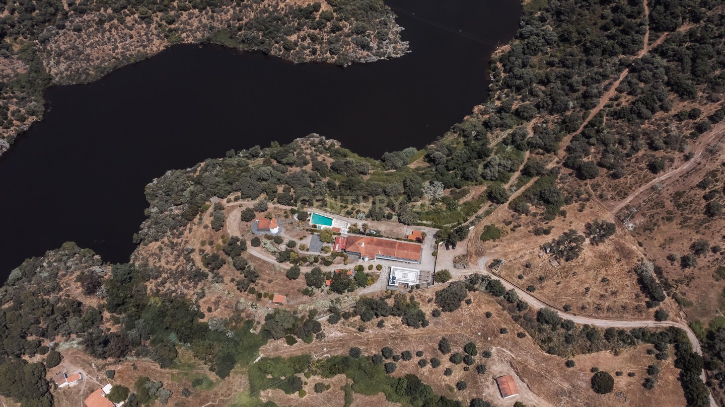Nur 120 Kilometer von Lissabon und 100 Kilometer von Spanien entfernt, befindet sich dieses außergewöhnliche 3,1 Hektar große Anwesen, eine wahre Oase der Ruhe, des Komforts und der Privatsphäre, umgeben von Natur und mit direktem Zugang zum Maranhão-Staudamm - einschließlich eines privaten Stegs für den Zugang zum Wasser.