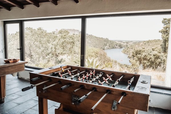 Nur 120 Kilometer von Lissabon und 100 Kilometer von Spanien entfernt, befindet sich dieses außergewöhnliche 3,1 Hektar große Anwesen, eine wahre Oase der Ruhe, des Komforts und der Privatsphäre, umgeben von Natur und mit direktem Zugang zum Maranhão-Staudamm - einschließlich eines privaten Stegs für den Zugang zum Wasser.