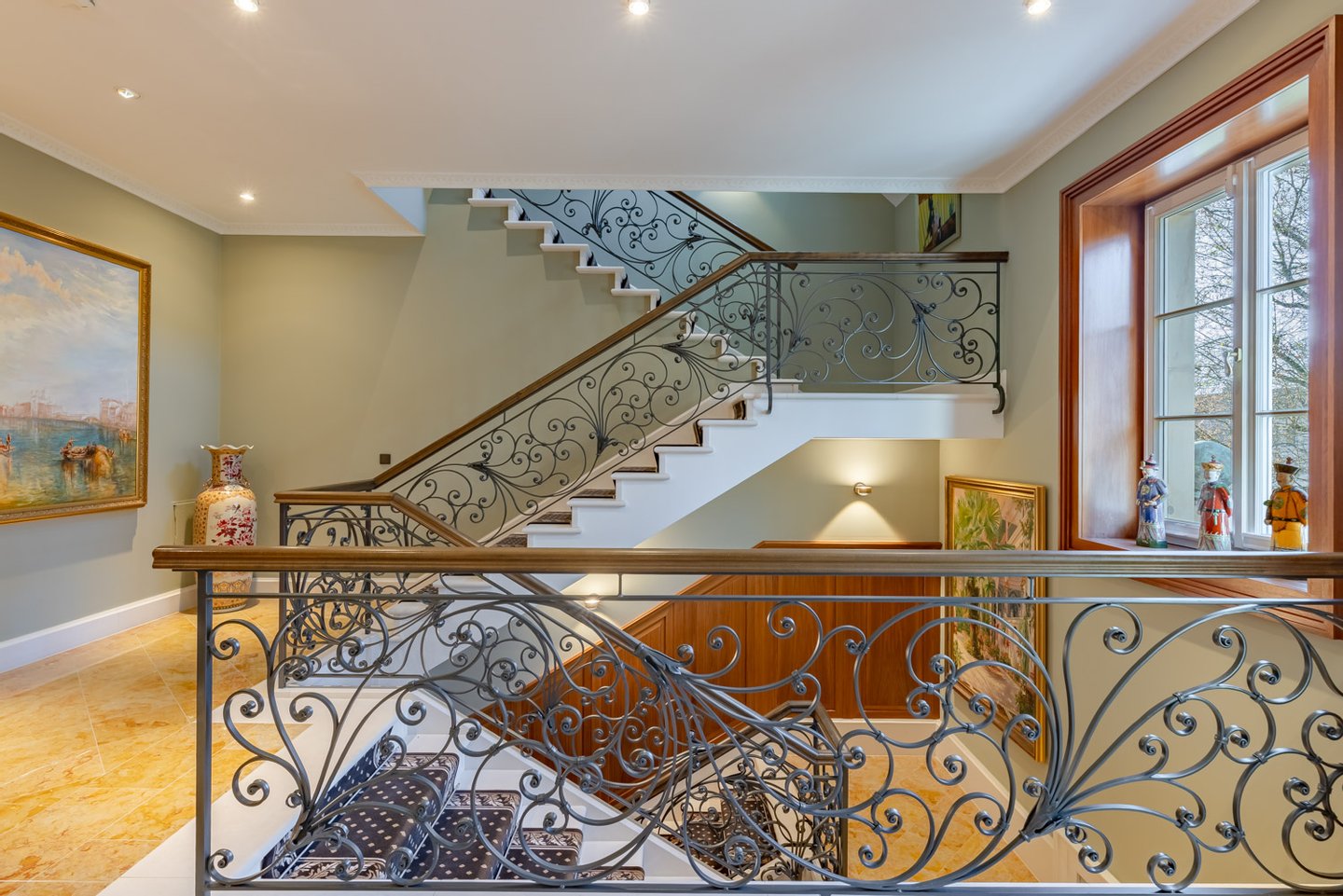 - Marble and natural stone floors, partly with decorative inlays