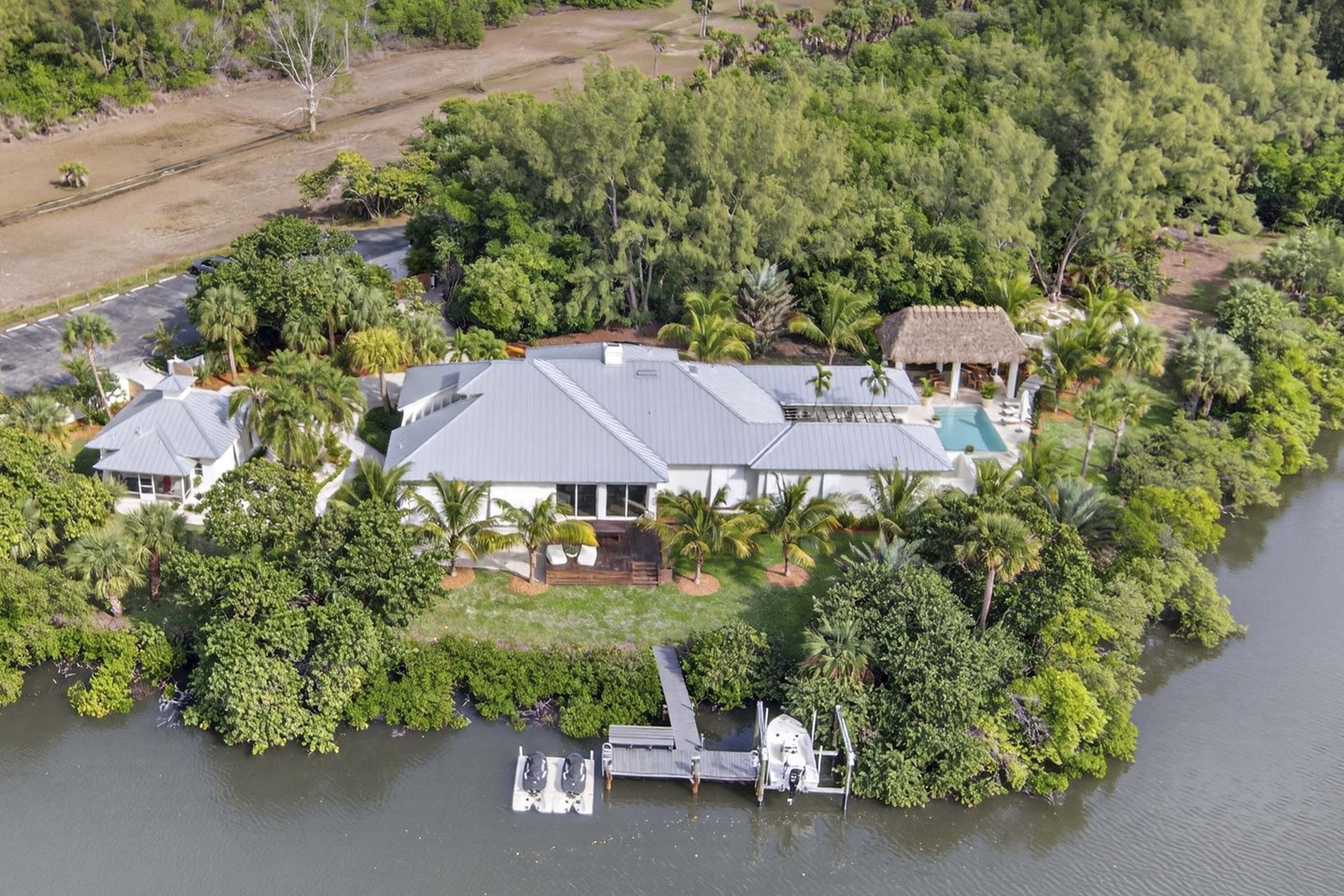An exceptional riverfront sanctuary awaits on over six acres with more than 400 feet of water frontage, surrounded by Jack Island State Park. This distinguished estate captures the essence of Florida's Treasure Coast with sweeping Indian River Lagoon vistas, private boat access, and direct connection to pristine Jack Island Preserve's four-mile nature trails. The thoughtfully designed main residence and private guest house deliver refined waterfront living with panoramic preserve and river views from nearly every room. Multiple outdoor living spaces, private pool, and extensive dock facilities create an unparalleled setting for both intimate gatherings and grand-scale entertaining. The property's rare positioning adjacent to protected state parkland ensures perpetual privacy and natural beauty, while proximity to both Vero Beach and the Fort Pierce Inlet provides immediate ocean access. Championship golf, waterfront dining, and cultural attractions lie minutes away, yet this gated retreat remains a world apart—offering discerning buyers an irreplaceable combination of seclusion, natural splendor, and effortless coastal elegance. Property and opportunity details provided by seller or others; buyer to verify.
