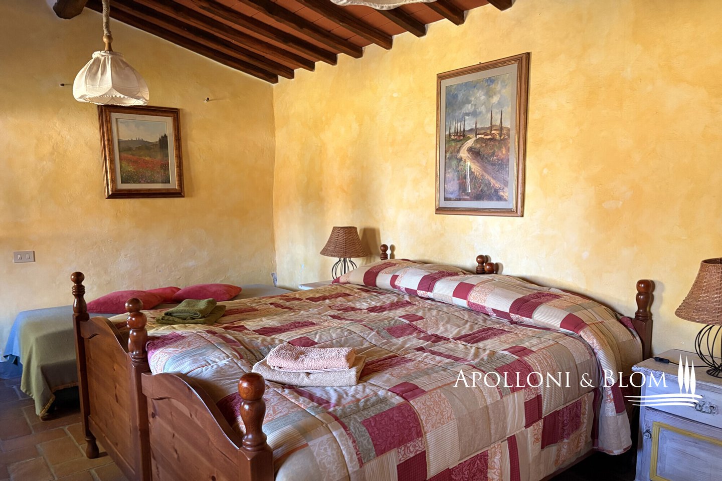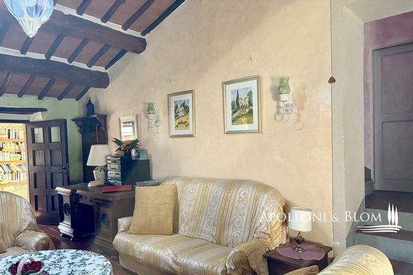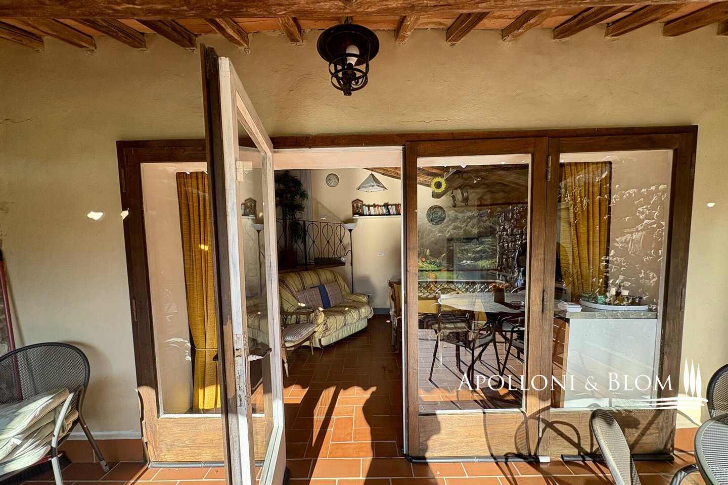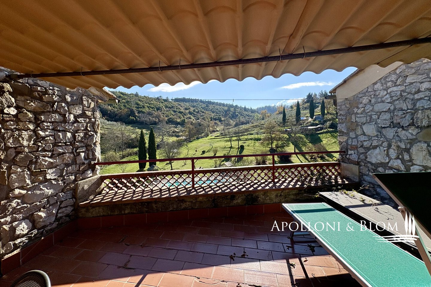 In einem renovierten charmanten Wohnhaus inmitten eines Naturschutzgebietes mit Garten, Panoramaterrasse, Loggia und Schwimmbad. Eingebettet in den Zauber eines Naturschutzgebietes, in dem Stille herrscht, bieten wir eine Wohnung auf zwei Ebenen in einem herrlichen Wohnhaus aus dem Jahr 1400 zum Verkauf an, das den Charme ländlicher Tradition mit einer grundlegenden Restaurierung aus dem Jahr 1998 mit kontinuierlichen Ausbesserungen gekonnt verbindet. Die Immobilie erstreckt sich über eine Innenfläche von 236 Quadratmetern auf zwei Ebenen und zeichnet sich durch edle Materialien wie die originalen Terrakottafliesen, Decken mit freiliegenden Holzbalken sowie Stein- und Ziegelfassaden aus. Im Erdgeschoss befinden sich Funktionsräume (46 Quadratmeter), die als Lager und Technikräume dienen, sowie ein restaurierter antiker Ofen. Im ersten Stock führt der Eingang zu einem eleganten Wohnzimmer mit Kamin, das von einer Hauptküche mit Speisekammer und einem herrlichen Schlafbereich mit vier Schlafzimmern mit eigenem Bad, eines davon mit Whirlpool, flankiert wird. Eine zweite Küche mit direktem Zugang zur 60 m² großen Panoramaterrasse und eine kleine Diele mit Kamin vervollständigen das Innere. Die Harmonie zwischen Innen- und Außenbereich wird durch eine 80 m² große Panoramaterrasse, eine überdachte Loggia und eine 60 m² große Dachterrasse unterstrichen, die sich perfekt für Mahlzeiten im Freien eignet und einen eindrucksvollen Blick auf die umliegende Landschaft bietet. Die Residenz ist von einem etwa einen Hektar großen Garten umgeben, einer Oase der Ruhe, die absolute Privatsphäre garantiert und Zugang zu einem großen Swimmingpool im Grünen bietet. Diese Immobilie ist ein exklusives Angebot für alle, die einen luxuriösen Rückzugsort suchen, der sofort bewohnt werden kann und bei dem jedes architektonische Detail und jede Ausstattung von einem gekonnten Bauhandwerk zeugt.