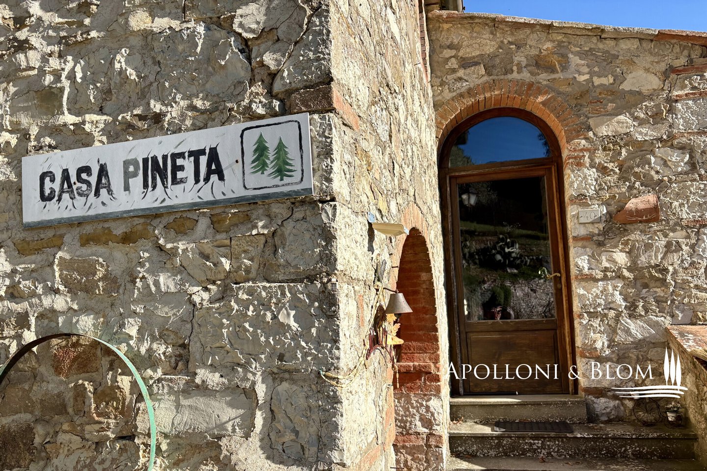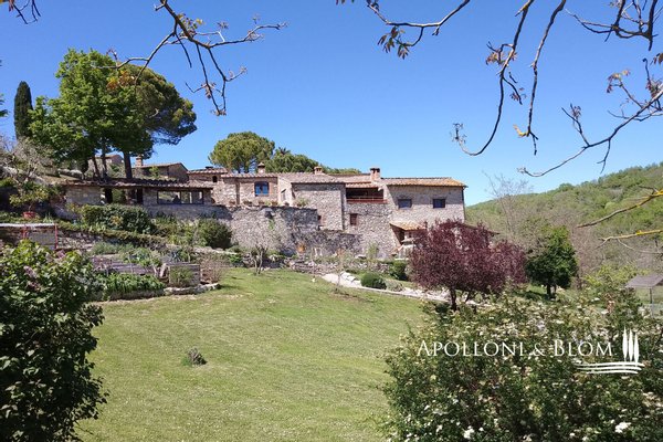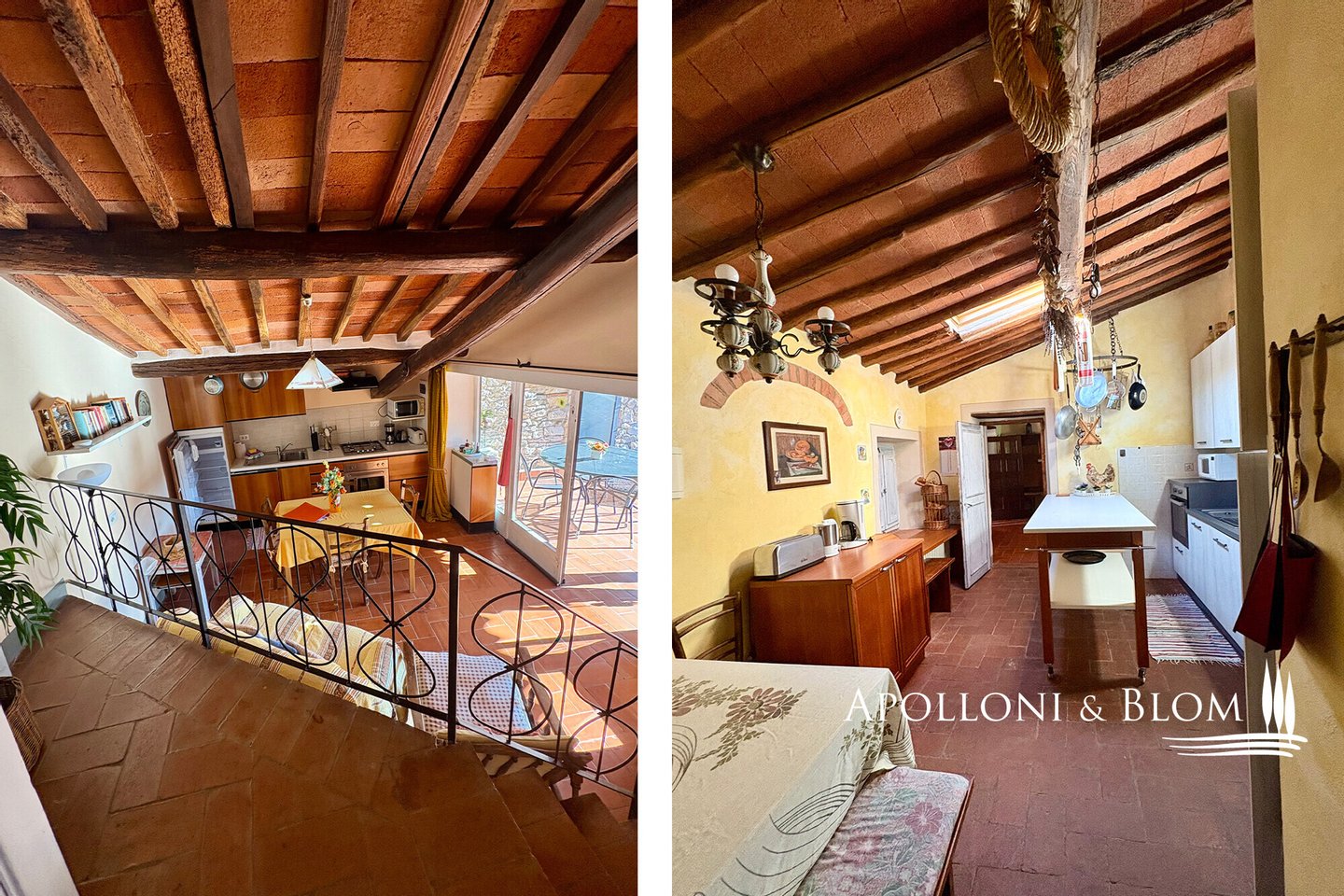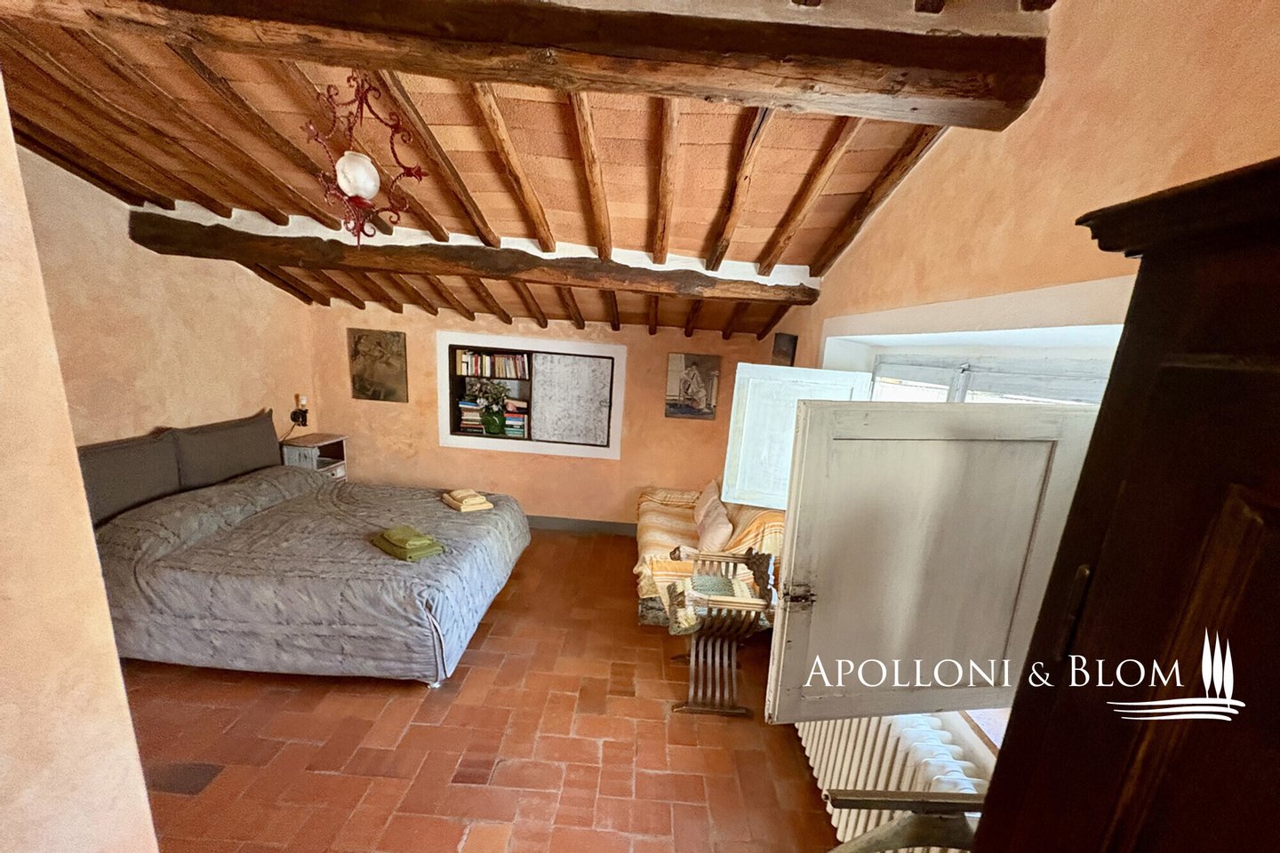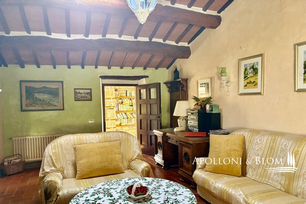 In einem renovierten charmanten Wohnhaus inmitten eines Naturschutzgebietes mit Garten, Panoramaterrasse, Loggia und Schwimmbad. Eingebettet in den Zauber eines Naturschutzgebietes, in dem Stille herrscht, bieten wir eine Wohnung auf zwei Ebenen in einem herrlichen Wohnhaus aus dem Jahr 1400 zum Verkauf an, das den Charme ländlicher Tradition mit einer grundlegenden Restaurierung aus dem Jahr 1998 mit kontinuierlichen Ausbesserungen gekonnt verbindet. Die Immobilie erstreckt sich über eine Innenfläche von 236 Quadratmetern auf zwei Ebenen und zeichnet sich durch edle Materialien wie die originalen Terrakottafliesen, Decken mit freiliegenden Holzbalken sowie Stein- und Ziegelfassaden aus. Im Erdgeschoss befinden sich Funktionsräume (46 Quadratmeter), die als Lager und Technikräume dienen, sowie ein restaurierter antiker Ofen. Im ersten Stock führt der Eingang zu einem eleganten Wohnzimmer mit Kamin, das von einer Hauptküche mit Speisekammer und einem herrlichen Schlafbereich mit vier Schlafzimmern mit eigenem Bad, eines davon mit Whirlpool, flankiert wird. Eine zweite Küche mit direktem Zugang zur 60 m² großen Panoramaterrasse und eine kleine Diele mit Kamin vervollständigen das Innere. Die Harmonie zwischen Innen- und Außenbereich wird durch eine 80 m² große Panoramaterrasse, eine überdachte Loggia und eine 60 m² große Dachterrasse unterstrichen, die sich perfekt für Mahlzeiten im Freien eignet und einen eindrucksvollen Blick auf die umliegende Landschaft bietet. Die Residenz ist von einem etwa einen Hektar großen Garten umgeben, einer Oase der Ruhe, die absolute Privatsphäre garantiert und Zugang zu einem großen Swimmingpool im Grünen bietet. Diese Immobilie ist ein exklusives Angebot für alle, die einen luxuriösen Rückzugsort suchen, der sofort bewohnt werden kann und bei dem jedes architektonische Detail und jede Ausstattung von einem gekonnten Bauhandwerk zeugt.