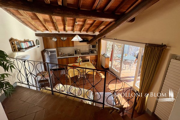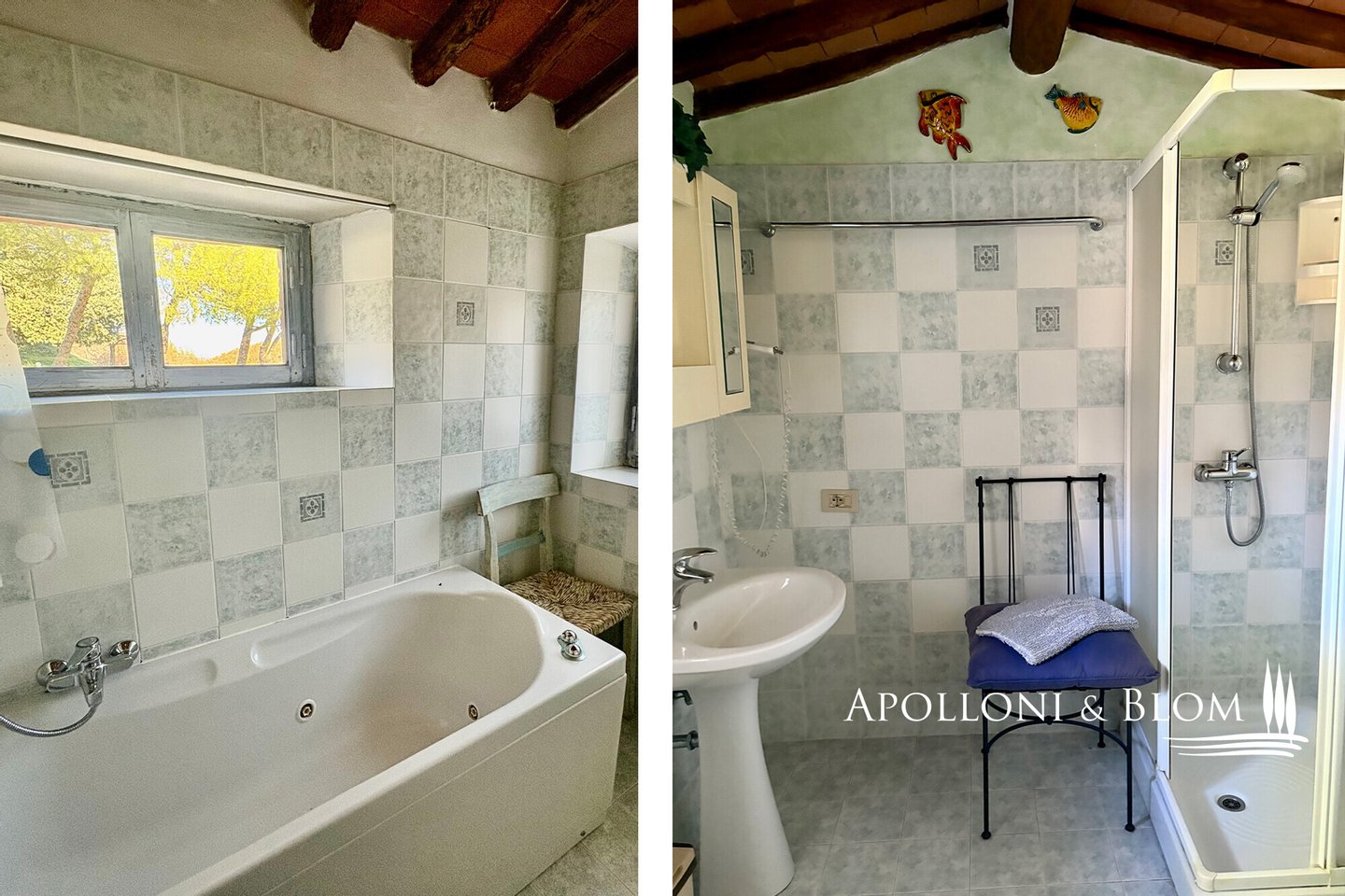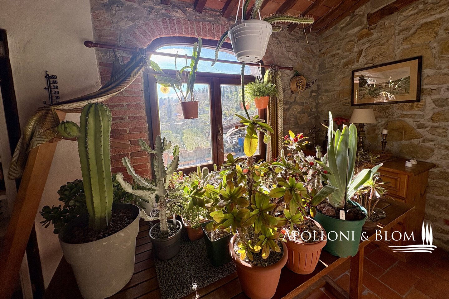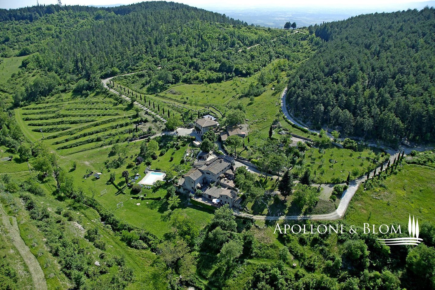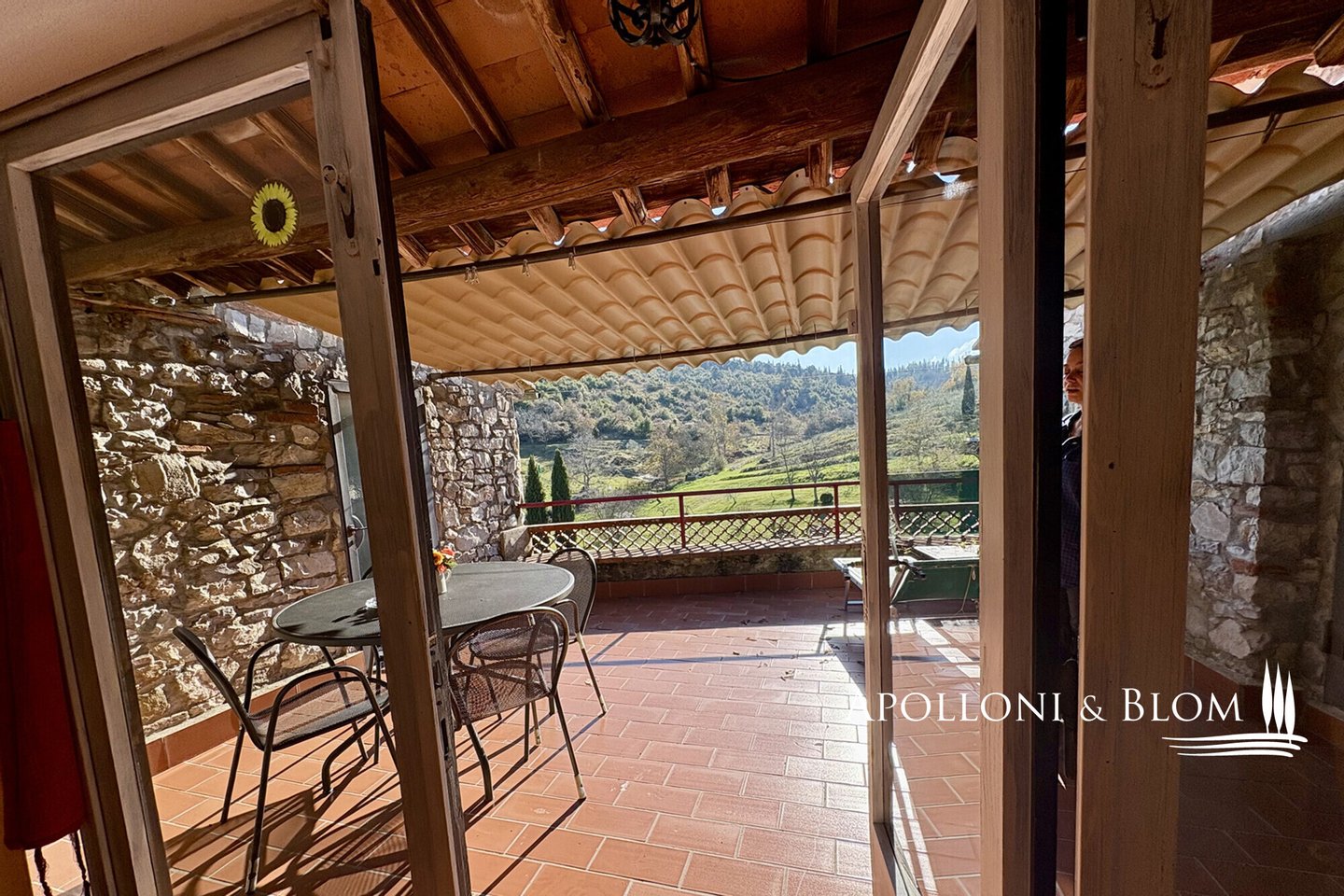 In einem renovierten charmanten Wohnhaus inmitten eines Naturschutzgebietes mit Garten, Panoramaterrasse, Loggia und Schwimmbad. Eingebettet in den Zauber eines Naturschutzgebietes, in dem Stille herrscht, bieten wir eine Wohnung auf zwei Ebenen in einem herrlichen Wohnhaus aus dem Jahr 1400 zum Verkauf an, das den Charme ländlicher Tradition mit einer grundlegenden Restaurierung aus dem Jahr 1998 mit kontinuierlichen Ausbesserungen gekonnt verbindet. Die Immobilie erstreckt sich über eine Innenfläche von 236 Quadratmetern auf zwei Ebenen und zeichnet sich durch edle Materialien wie die originalen Terrakottafliesen, Decken mit freiliegenden Holzbalken sowie Stein- und Ziegelfassaden aus. Im Erdgeschoss befinden sich Funktionsräume (46 Quadratmeter), die als Lager und Technikräume dienen, sowie ein restaurierter antiker Ofen. Im ersten Stock führt der Eingang zu einem eleganten Wohnzimmer mit Kamin, das von einer Hauptküche mit Speisekammer und einem herrlichen Schlafbereich mit vier Schlafzimmern mit eigenem Bad, eines davon mit Whirlpool, flankiert wird. Eine zweite Küche mit direktem Zugang zur 60 m² großen Panoramaterrasse und eine kleine Diele mit Kamin vervollständigen das Innere. Die Harmonie zwischen Innen- und Außenbereich wird durch eine 80 m² große Panoramaterrasse, eine überdachte Loggia und eine 60 m² große Dachterrasse unterstrichen, die sich perfekt für Mahlzeiten im Freien eignet und einen eindrucksvollen Blick auf die umliegende Landschaft bietet. Die Residenz ist von einem etwa einen Hektar großen Garten umgeben, einer Oase der Ruhe, die absolute Privatsphäre garantiert und Zugang zu einem großen Swimmingpool im Grünen bietet. Diese Immobilie ist ein exklusives Angebot für alle, die einen luxuriösen Rückzugsort suchen, der sofort bewohnt werden kann und bei dem jedes architektonische Detail und jede Ausstattung von einem gekonnten Bauhandwerk zeugt.