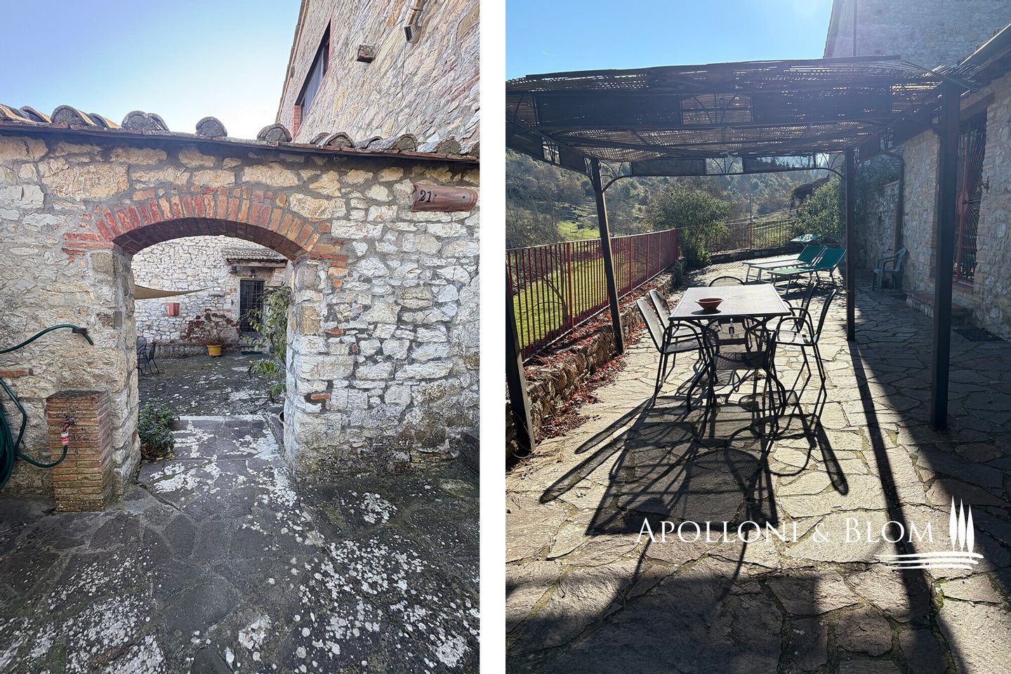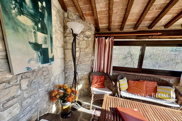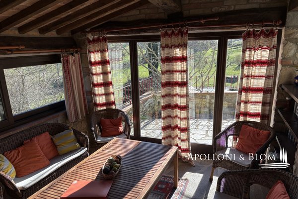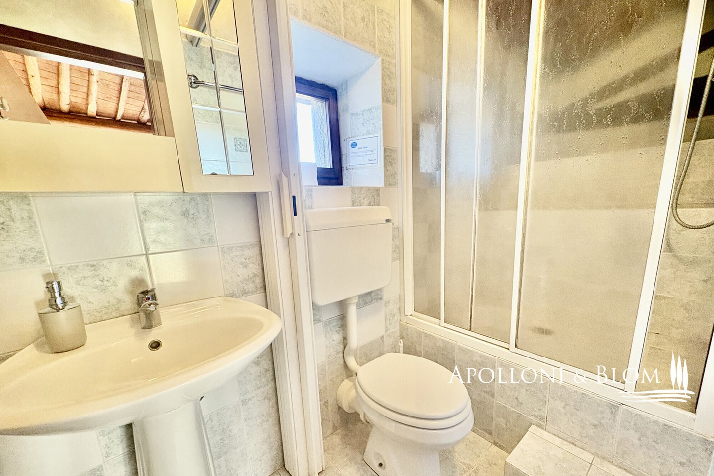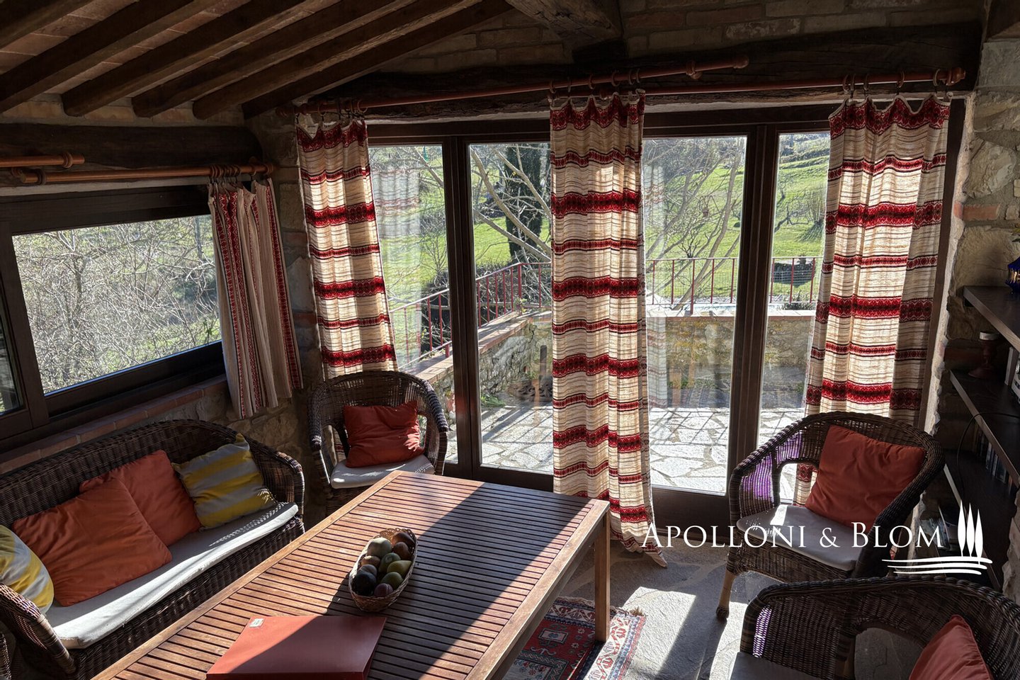 Typisch toskanisches Wohnhaus mit Panoramablick, Innenräumen mit Terrakotta-Böden sowie Gewölbe- und Balkendecken, die den Ursprung als Stall verraten. Das Haus hat einen Nord- und Südausgang, jeweils auf eine großzügige Terrasse. Das Haus „Casa Acacia“ weist eine raffinierte Synthese aus Geschichte und Komfort auf, die dank einer 1998 abgeschlossenen Restaurierung mit wiederholten Verbesserungen gekonnt erhalten wurde. Die Wohnung erstreckt sich über eine Fläche von 120 Quadratmetern auf zwei Ebenen, auf denen die traditionelle Ästhetik durch freiliegende Holzbalken und warme Terrakottaböden zelebriert wird. Auf der ersten Ebene empfängt Sie eine Wohnküche. Zwei romantische Schlafzimmer schließen sich an, auf derselben Ebene befindet sich ein Duschbad. Das Juwel der Wohnung ist ein reizender Wintergarten, der sich zur großen Terrasse in Südlage öffnet. Die zweite Etage erweitert die Vielseitigkeit der Wohnung mit einem sehr großen Wohnraum mit Holzofen sowie einem anschließenden Stufenbad. Des Weiteren gibt es ein weiteres großes Schlafzimmer sowie einen kleinen Küchenbereich, der in einen luxuriösen begehbaren Kleiderschrank oder ein zusätzliches großes Badezimmer umgebaut werden könnte. Zwei weitere Abstellräume sowie ein Heizkeller im Erdgeschoss, zusammen ca. 46 m², gehören ebenfalls zum Haus. Der logistische Komfort durch zwei reservierte Parkplätze ist gewährleistet. Die Immobilie befindet sich in ausgezeichnetem, bewohnbarem Zustand und ist bereit, diejenigen zu empfangen, die die authentische Eleganz historischer toskanischer Residenzen suchen.
