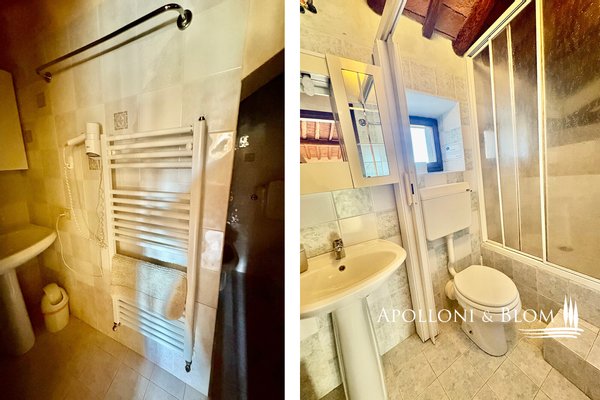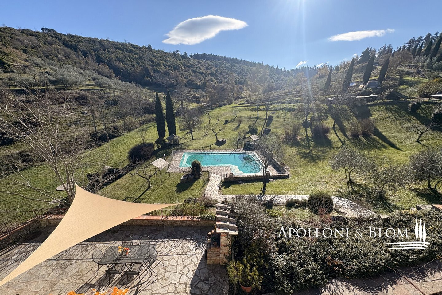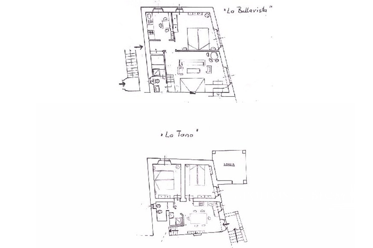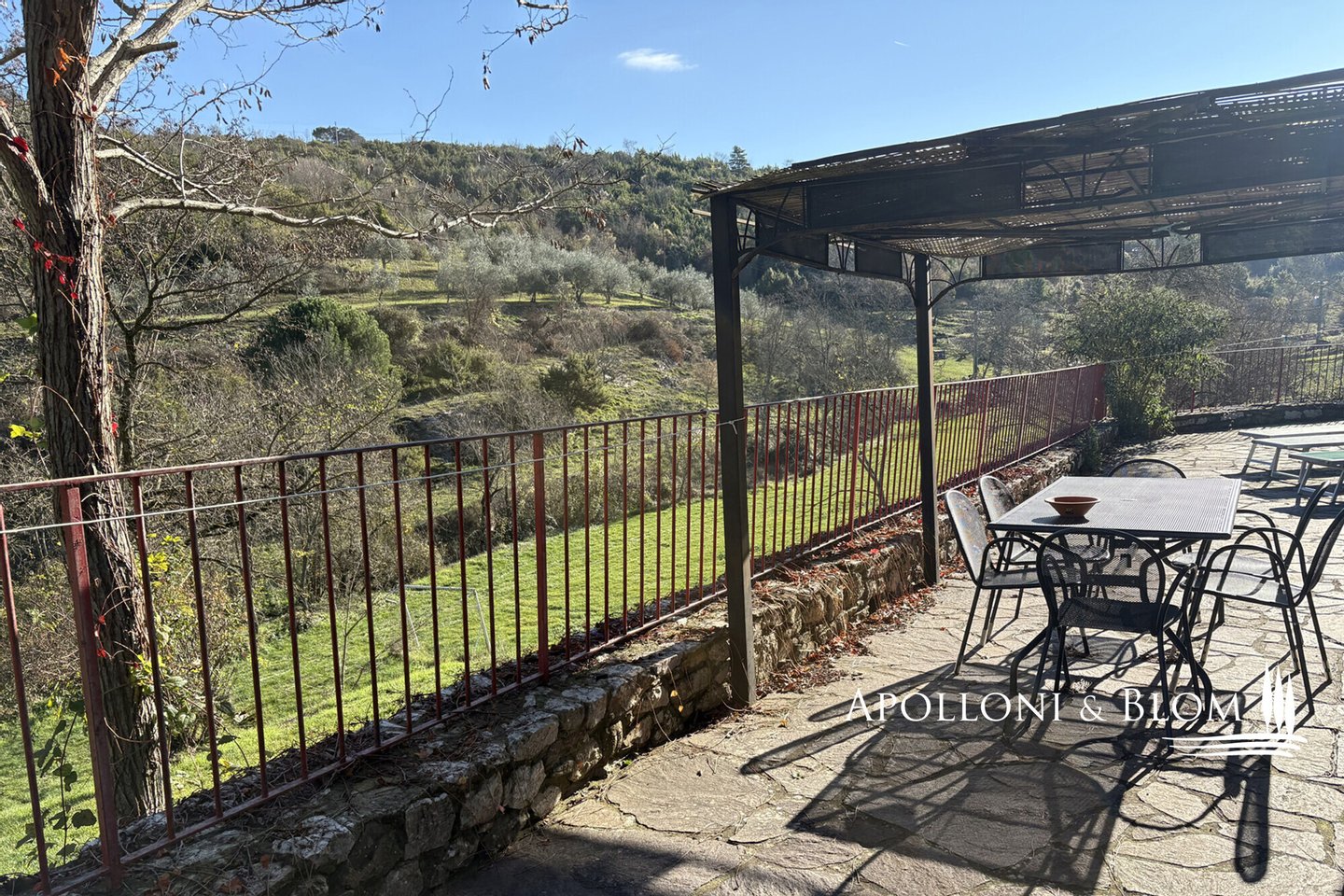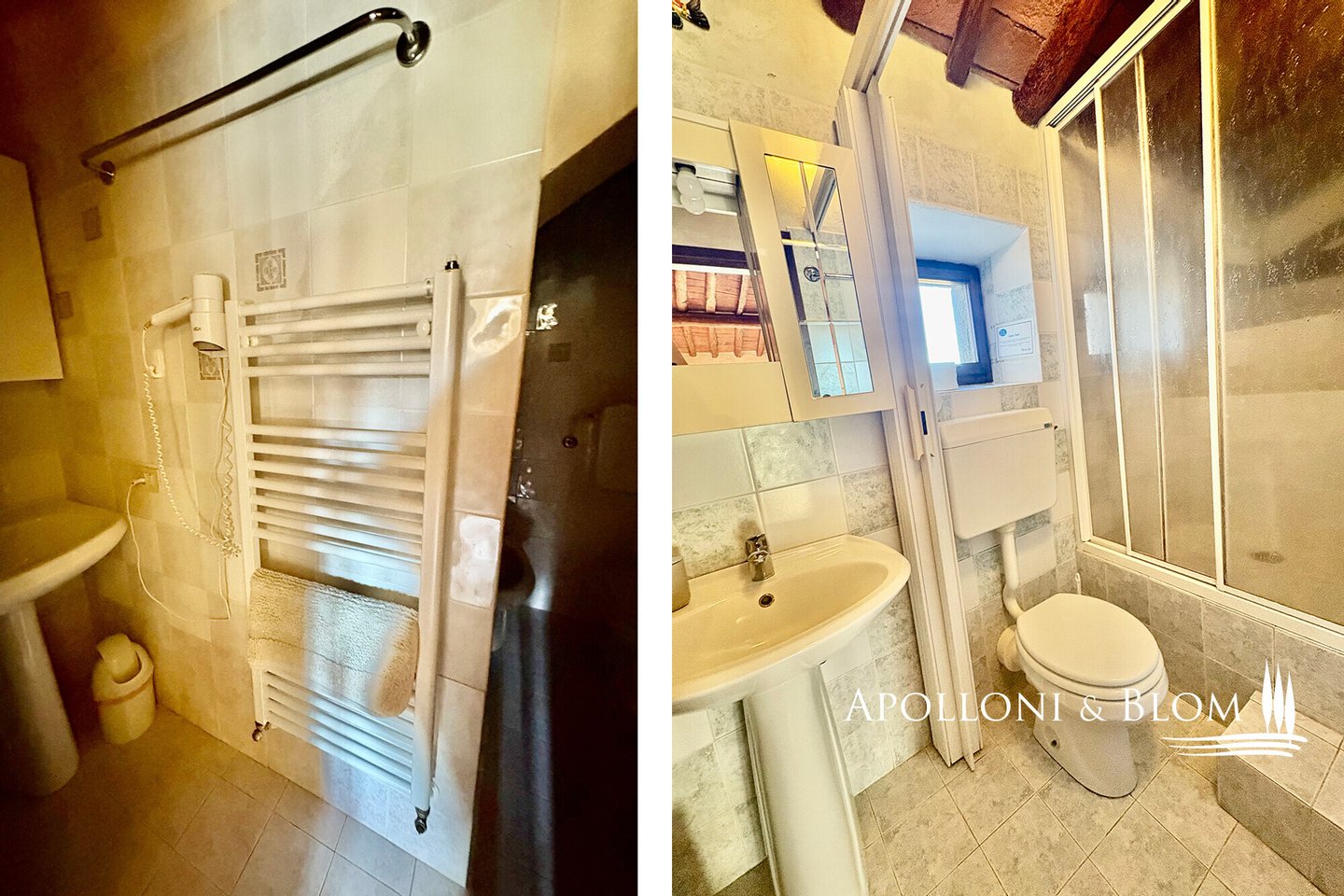 Typisch toskanisches Wohnhaus mit Panoramablick, Innenräumen mit Terrakotta-Böden sowie Gewölbe- und Balkendecken, die den Ursprung als Stall verraten. Das Haus hat einen Nord- und Südausgang, jeweils auf eine großzügige Terrasse. Das Haus „Casa Acacia“ weist eine raffinierte Synthese aus Geschichte und Komfort auf, die dank einer 1998 abgeschlossenen Restaurierung mit wiederholten Verbesserungen gekonnt erhalten wurde. Die Wohnung erstreckt sich über eine Fläche von 120 Quadratmetern auf zwei Ebenen, auf denen die traditionelle Ästhetik durch freiliegende Holzbalken und warme Terrakottaböden zelebriert wird. Auf der ersten Ebene empfängt Sie eine Wohnküche. Zwei romantische Schlafzimmer schließen sich an, auf derselben Ebene befindet sich ein Duschbad. Das Juwel der Wohnung ist ein reizender Wintergarten, der sich zur großen Terrasse in Südlage öffnet. Die zweite Etage erweitert die Vielseitigkeit der Wohnung mit einem sehr großen Wohnraum mit Holzofen sowie einem anschließenden Stufenbad. Des Weiteren gibt es ein weiteres großes Schlafzimmer sowie einen kleinen Küchenbereich, der in einen luxuriösen begehbaren Kleiderschrank oder ein zusätzliches großes Badezimmer umgebaut werden könnte. Zwei weitere Abstellräume sowie ein Heizkeller im Erdgeschoss, zusammen ca. 46 m², gehören ebenfalls zum Haus. Der logistische Komfort durch zwei reservierte Parkplätze ist gewährleistet. Die Immobilie befindet sich in ausgezeichnetem, bewohnbarem Zustand und ist bereit, diejenigen zu empfangen, die die authentische Eleganz historischer toskanischer Residenzen suchen.