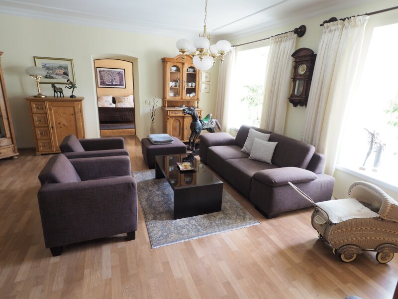 Das Herzstück dieses Anwesens ist zweifellos die großzügig ausgeführte Wohnung im Obergeschoss, die sich auf über 188 m² Wohnfläche erstreckt.