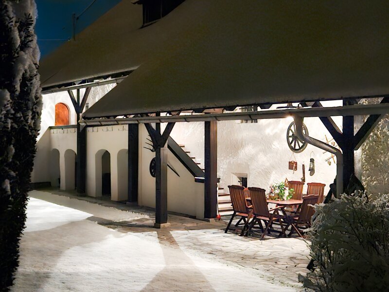 Die vollständig dokumentierte Besitzgeschichte des Hauses geht zurück bis in das Jahr 1478, in dem die erstmalige Verwendung als Berggericht nachgewiesen wurde. Jahrhunderte später stand es unter anderem im Besitz des "Grafen von Porcia", ehe es gegen Ende des 20. Jahrhunderts von der derzeitigen Eigentümerfamilie liebevoll renoviert und bis heute in einem ausgezeichneten Zustand erhalten wurde.