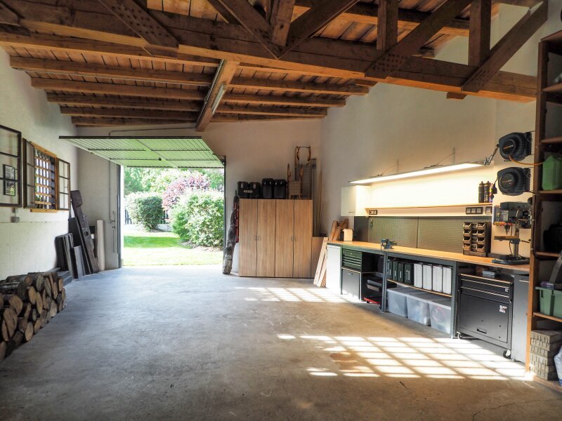 Eine großzügige Garage, für Ihre PKWs, Motorräder oder für die Nutzung als kleine Werkstatt rundet dieses Angebot ab.