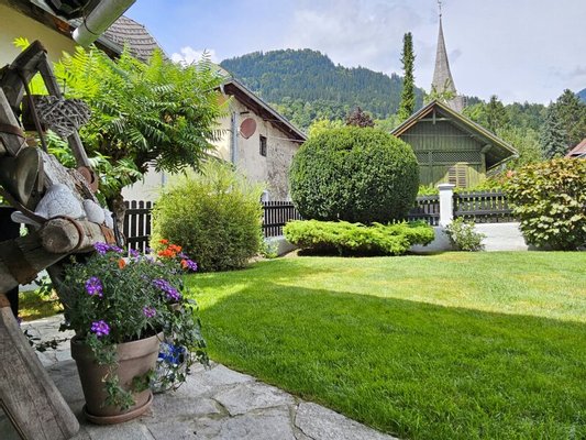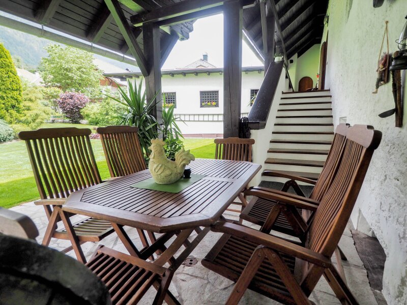 Für die wärmeren Jahreszeiten bietet die Liegenschaft einen idyllisch angelegten Garten mit einladender Terrasse und Blick auf den Hausberg von Steinfeld - Ihr perfekter Rückzugsort aus der Hektik des Alltags.