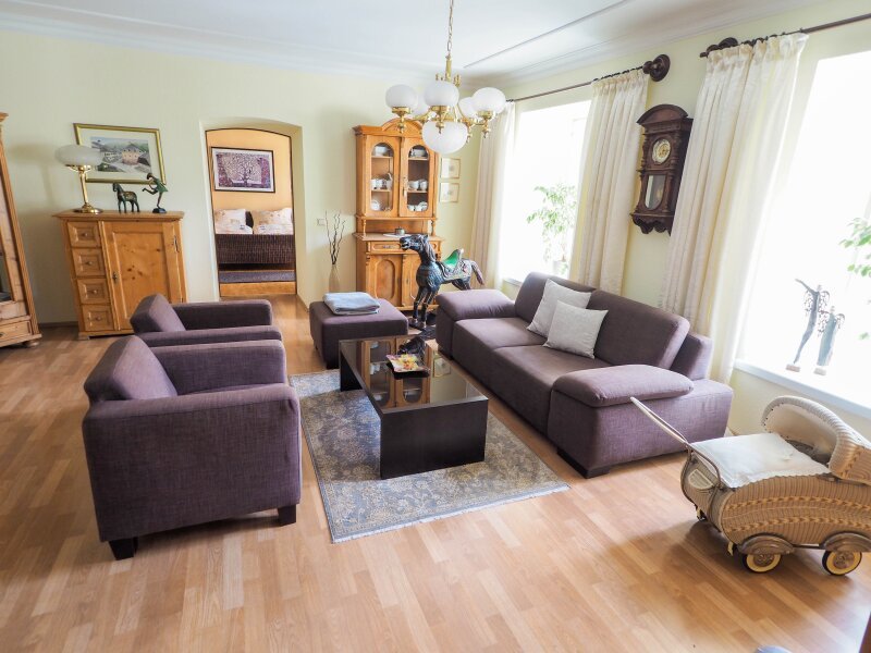Das Herzstück dieses Anwesens ist zweifellos die großzügig ausgeführte Wohnung im Obergeschoss, die sich auf über 188 m² Wohnfläche erstreckt.