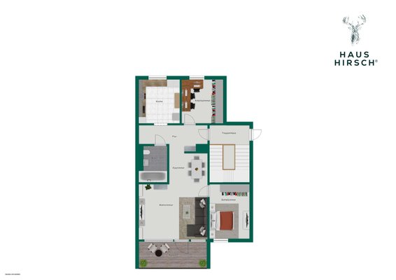 Die gesamte Raumaufteilung ist durchdacht und verbindet moderne Wohnqualität mit funktionalen Details. So entsteht ein harmonisches Gesamtbild aus zeitgemäßem Komfort und gemütlichem Flair.