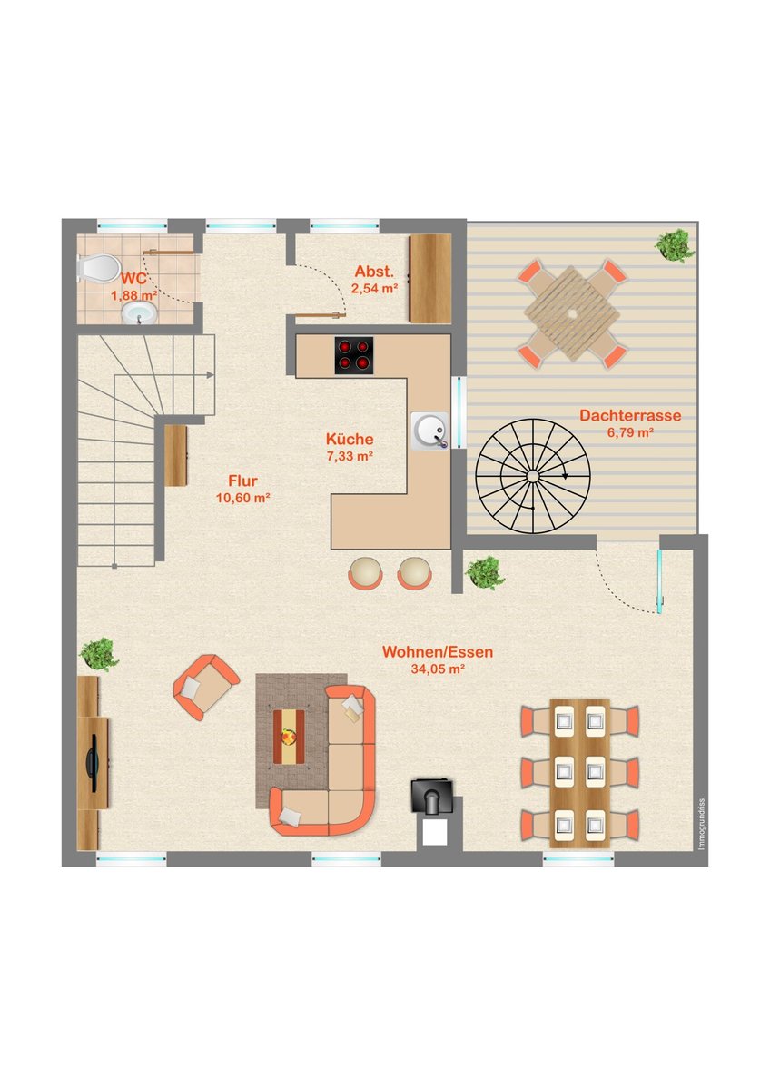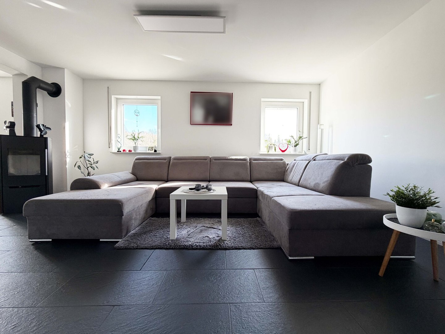 Im Wohnbereich befindet sich der gemütliche Teil. Ihre Couchlandschaft kommt hier optimal zur Geltung. Der Schwedenofen sorgt in der kälteren Jahreszeit für Wärme und Behaglichkeit.