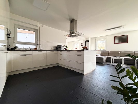 Hier schlägt das Herz des Zuhauses. Ein großer, offener Raum empfängt Sie und sorgt sofort für Wohlfühlatmosphäre. Sie gelangen in den Küchenbereich. Die auf Maß gefertigte „nobilia“-Markenküche ist großzügig und modern gestaltet. Helle Fronten, praktische Arbeitsflächen und viel Stauraum sorgen für Freude beim Kochen. Und das Beste: Die Küche ist im Preis inklusive.