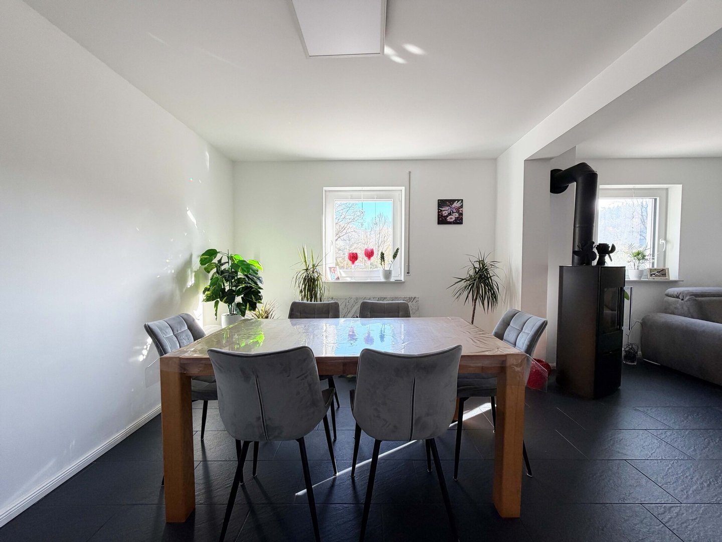 Im angrenzenden Essbereich spielt sich der gesellige Teil ab. Gemeinsames Essen mit Ihren Lieben und Freunden, schöne Gespräche und Beisammensein schaffen besondere Momente.