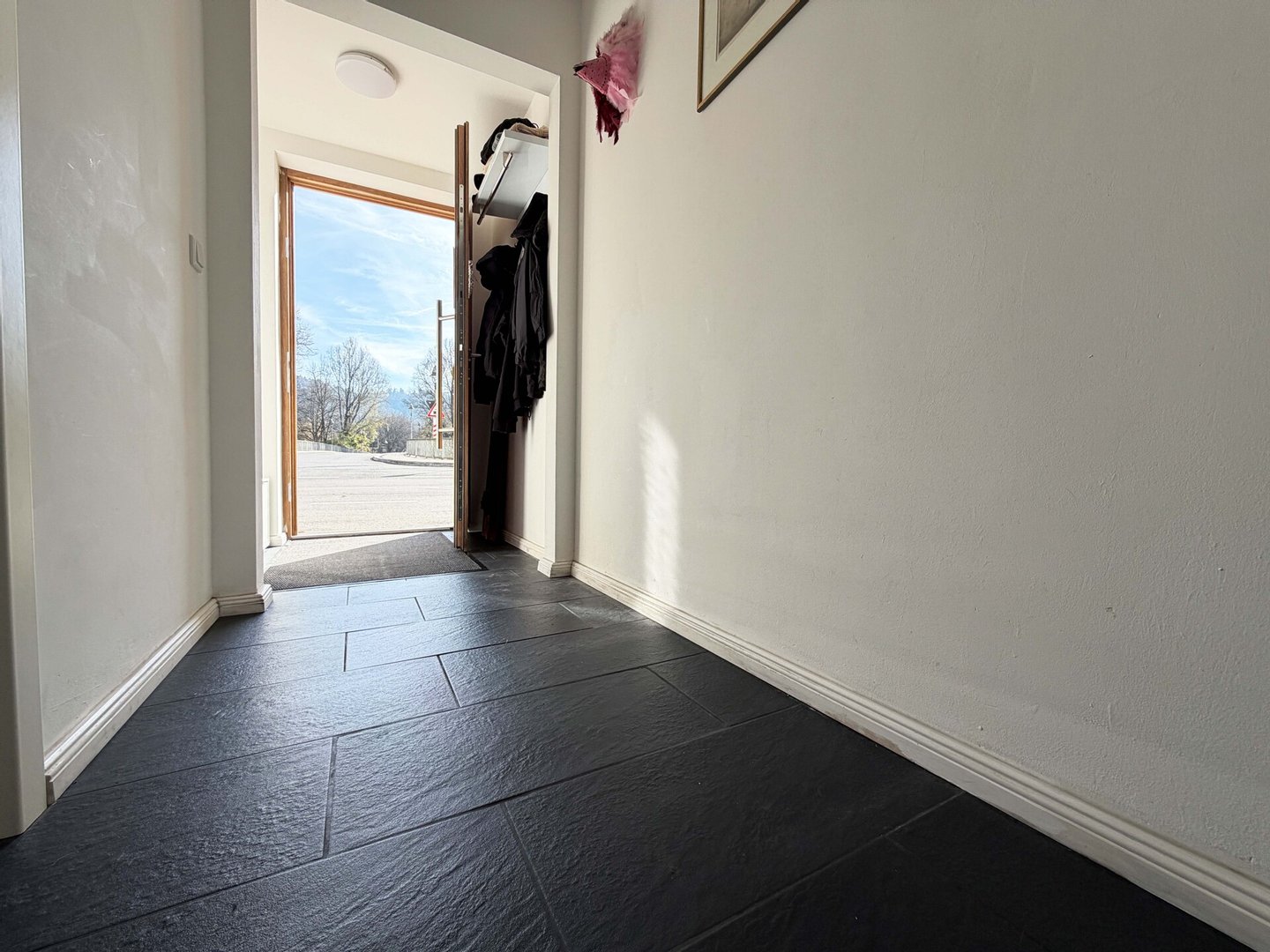 Sie können zwei Eingänge nutzen. Der vordere Eingang (Starzacher Straße) liegt im Erdgeschoss neben der integrierten Garage – kurze Wege sind garantiert.