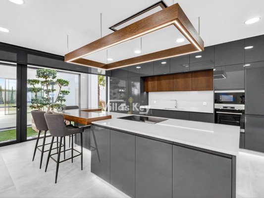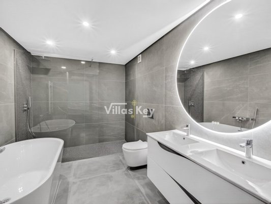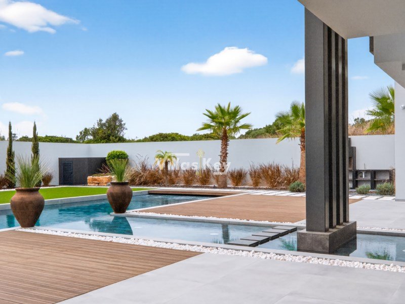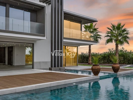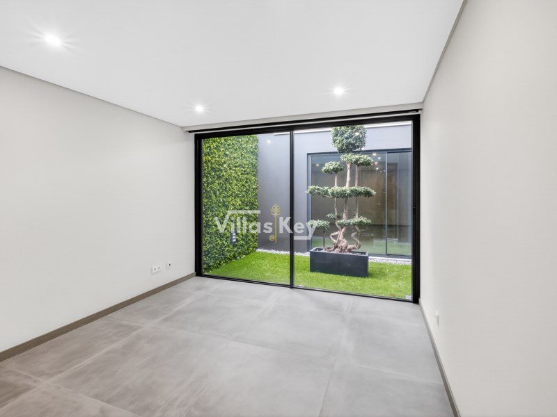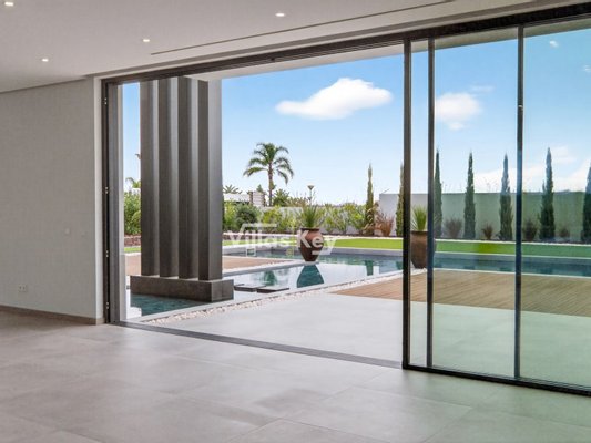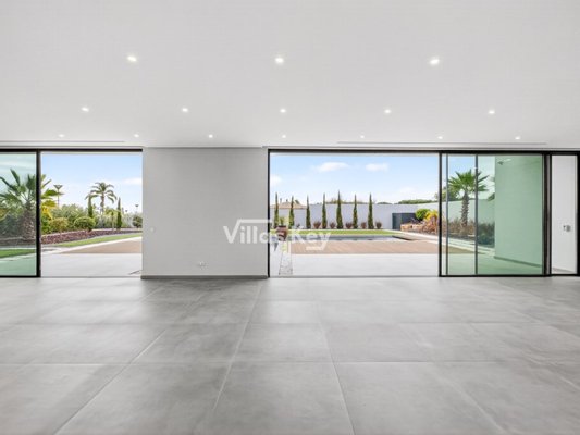 Die Villa verfügt über 4 großzügige Schlafzimmer (alle mit eigenem Bad) und 5 Badezimmer sowie ein geräumiges, lichtdurchflutetes Wohnzimmer mit großen Fenstern, die einen nahtlosen Übergang zwischen Innen- und Außenbereich ermöglichen.
