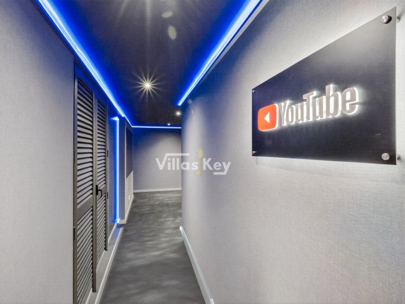 Zu den Freizeiteinrichtungen gehören ein privates Kino, ein Salzwasserpool mit angrenzendem Teich und eine großzügige Garage.