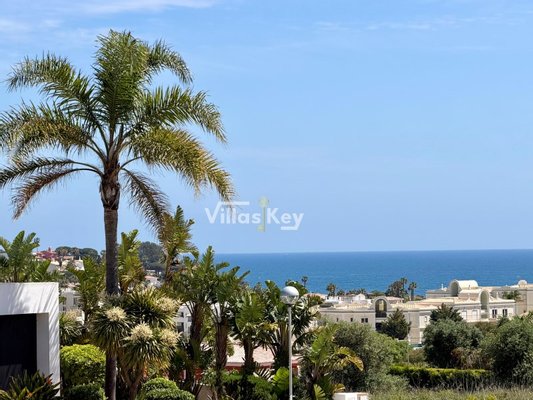 Prächtige Luxusvilla auf einem Grundstück mit liebevoll gestalteten Gärten und altem Baumbestand, mit atemberaubendem Meerblick.