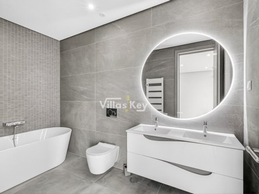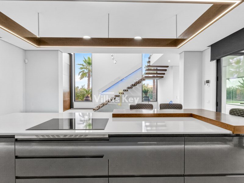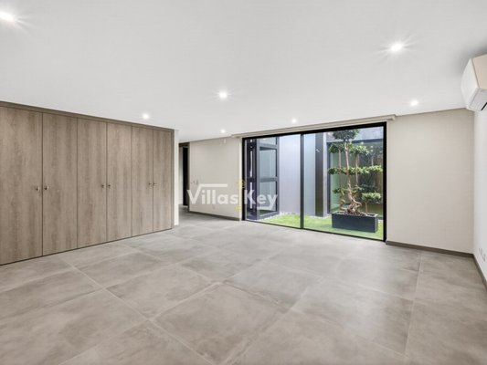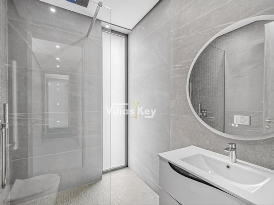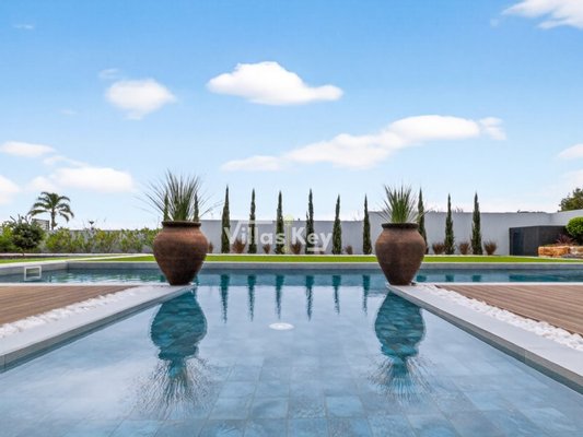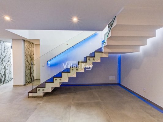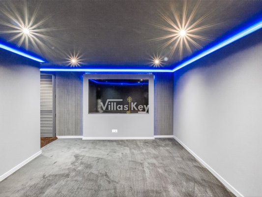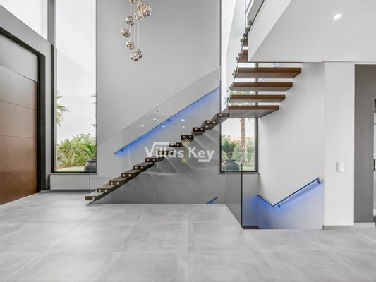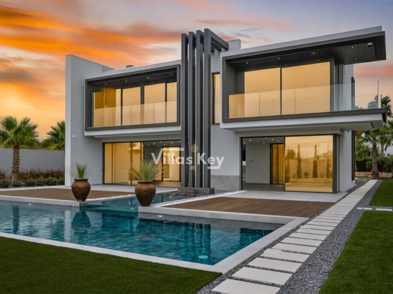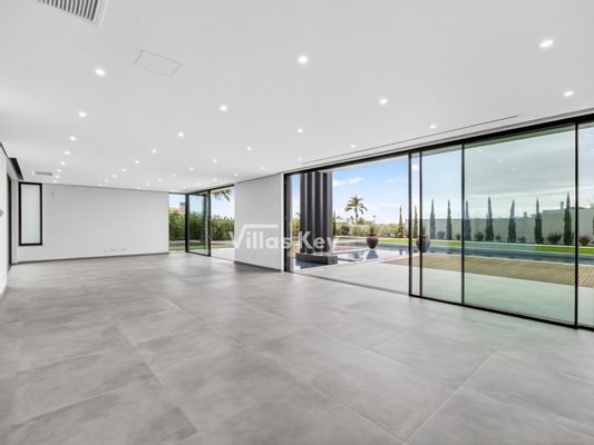 Die Villa verfügt über 4 großzügige Schlafzimmer (alle mit eigenem Bad) und 5 Badezimmer sowie ein geräumiges, lichtdurchflutetes Wohnzimmer mit großen Fenstern, die einen nahtlosen Übergang zwischen Innen- und Außenbereich ermöglichen.