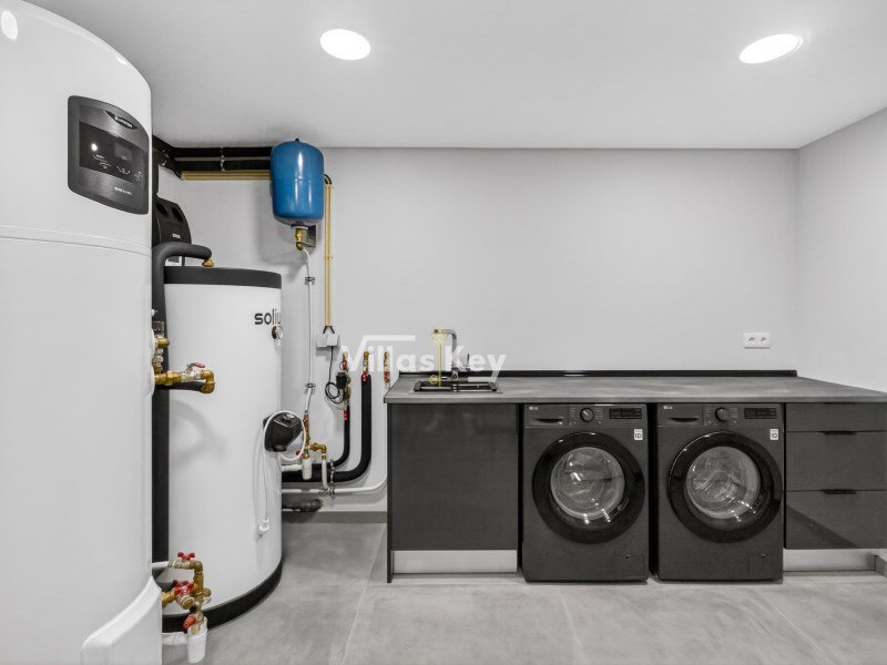 Das Anwesen erstreckt sich über drei Ebenen - Untergeschoss, Erdgeschoss und erstes Obergeschoss - und vereint Eleganz, Komfort und modernste Technologie in jedem Detail.