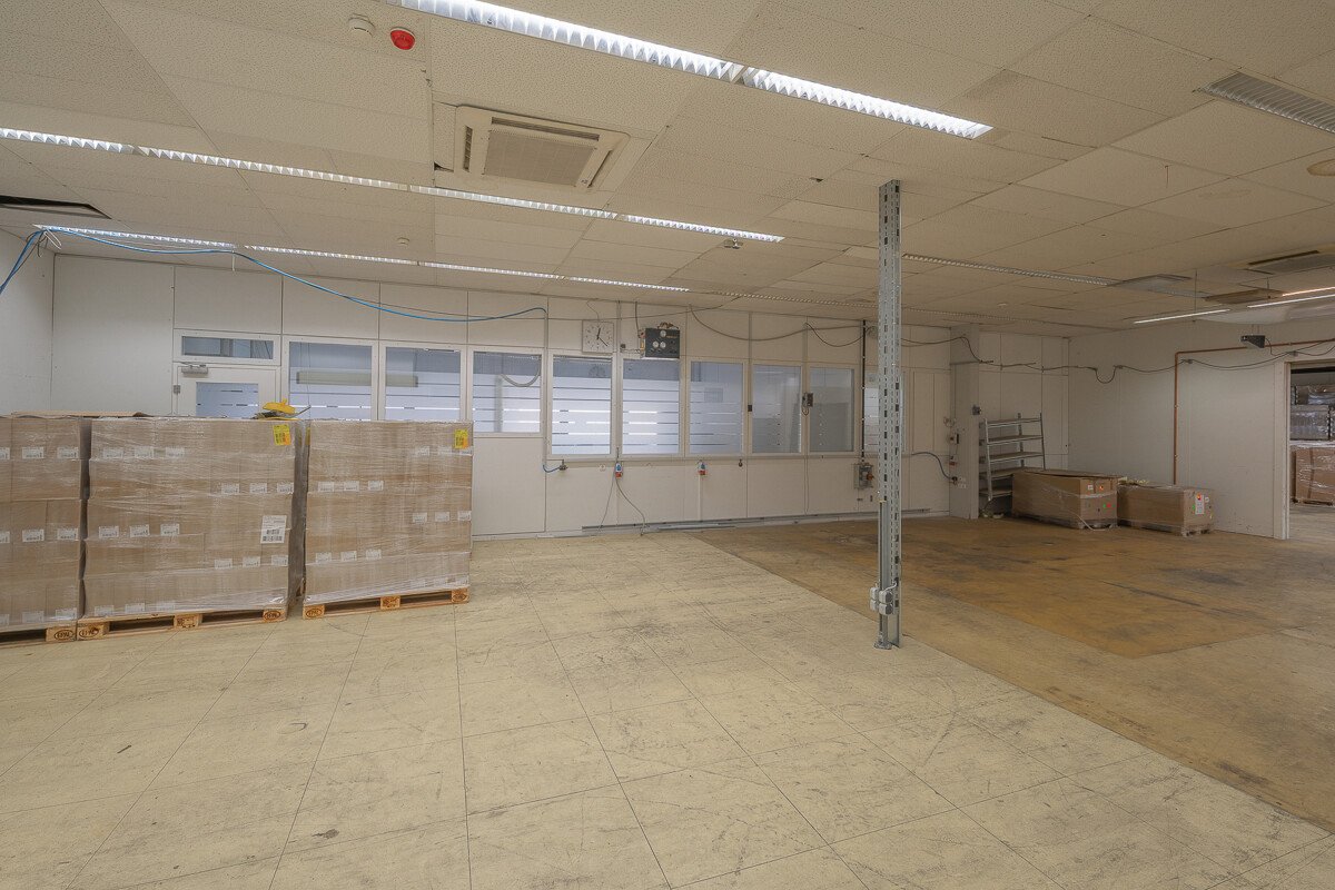 Die Halle verfügt über 1.500 qm Produktions- und 400 qm Büroflächen. Die ebenerdigen Produktionsflächen sind teilweise befahrbar. Die Bodenbelastung beträgt 1: 3.500 kg/qm.