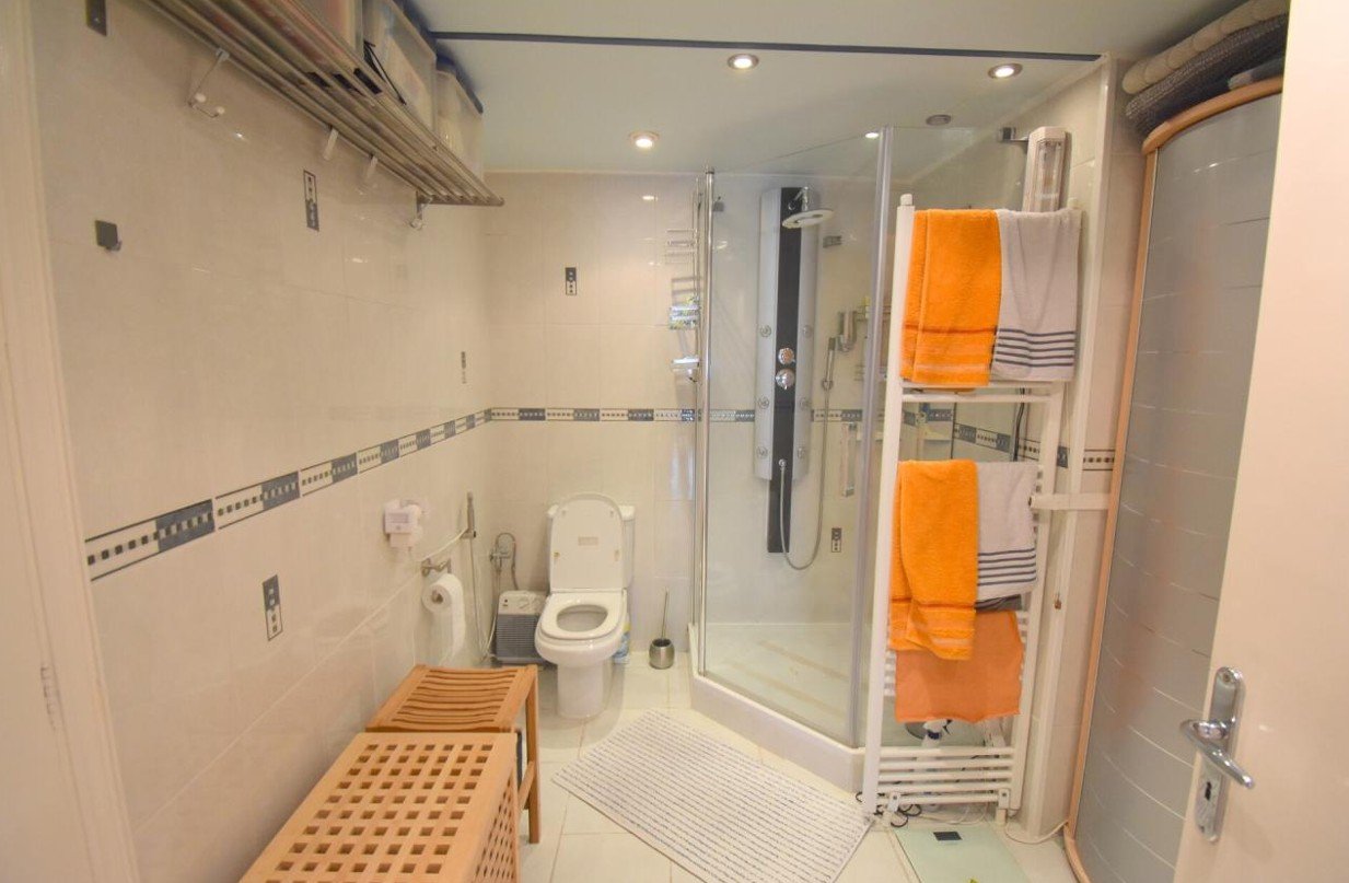Die Wasserversorgung ist flexibel geregelt: Es kann Stadtwasser oder Wasser aus dem eigenen Tank genutzt werden. Der Tank wird über eine Pumpe betrieben und sorgt jederzeit für optimalen Wasserdruck – besonders vorteilhaft in den Sommermonaten.