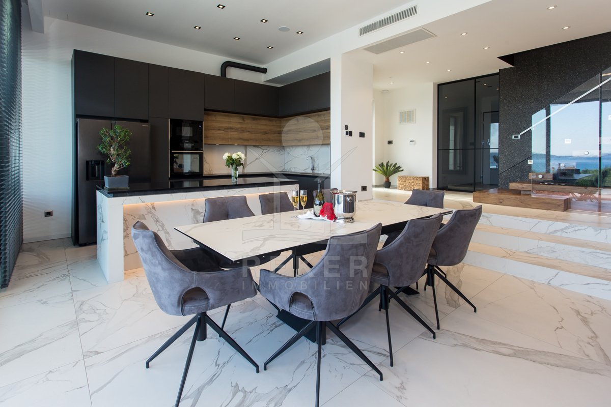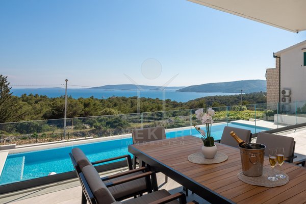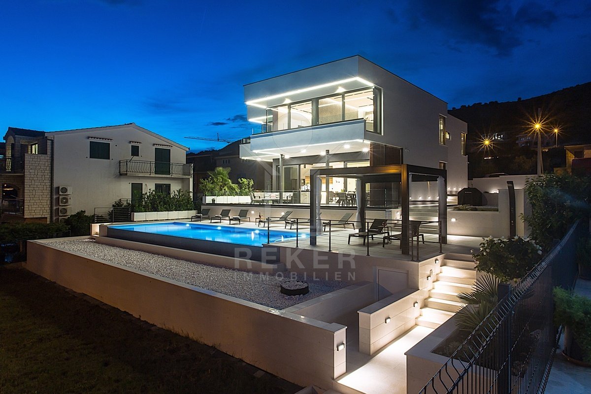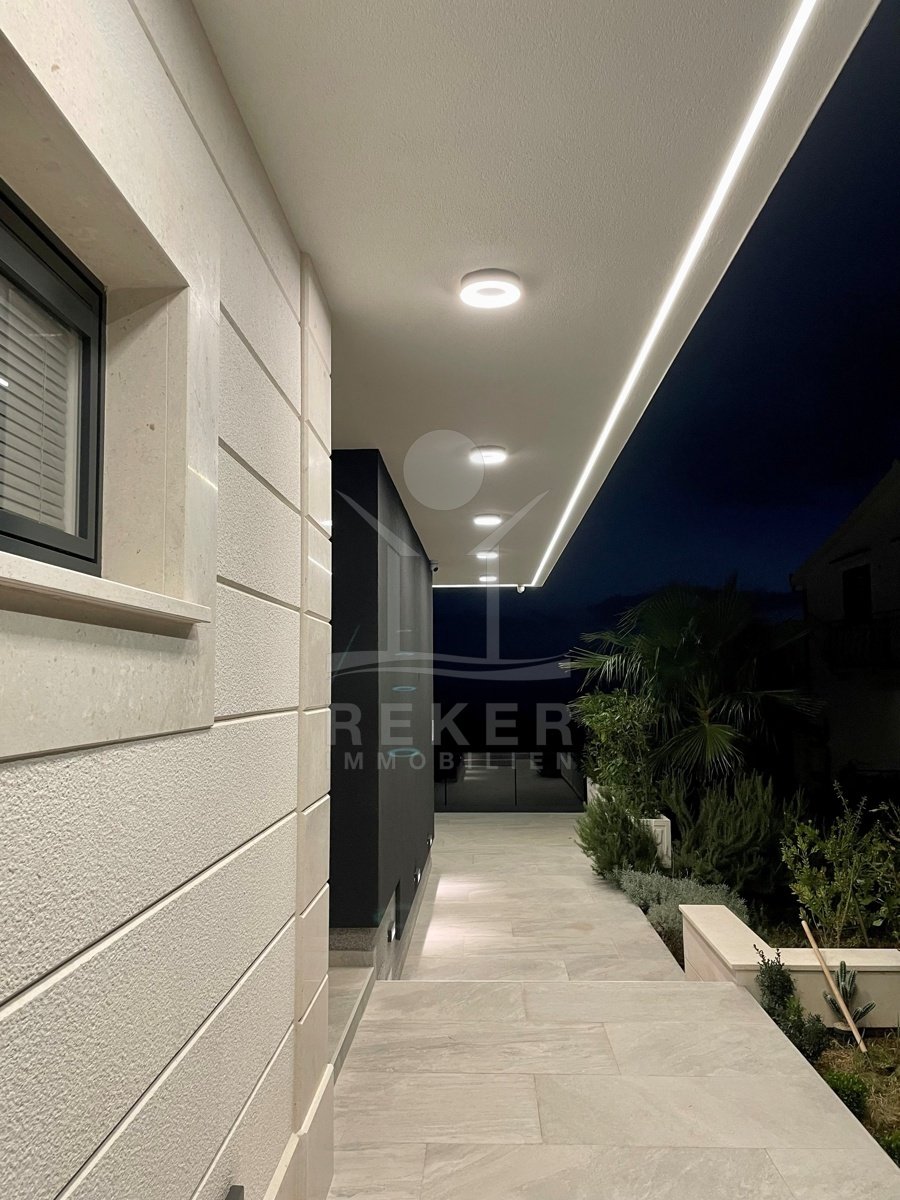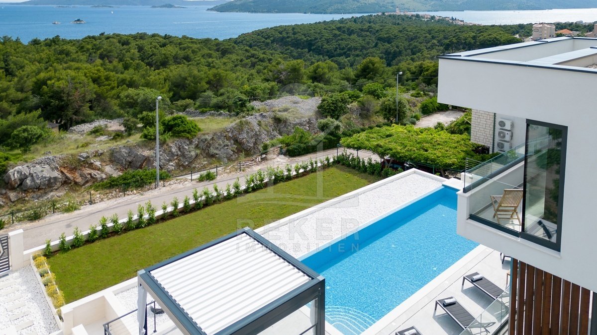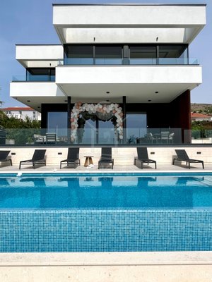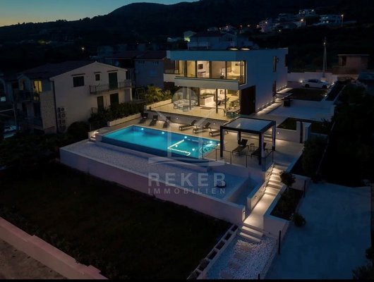Die Villa befindet sich in ruhiger Höhenlage nahe Trogir in Dalmatien, am Ende einer Sackgasse mit sehr wenig Verkehr. Das sorgt für Privatsphäre und entspannte Abläufe. Der Flughafen Split ist ca. 10 km entfernt, die Stadt Split ca. 30 km. Richtung