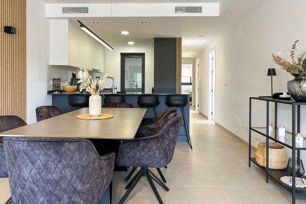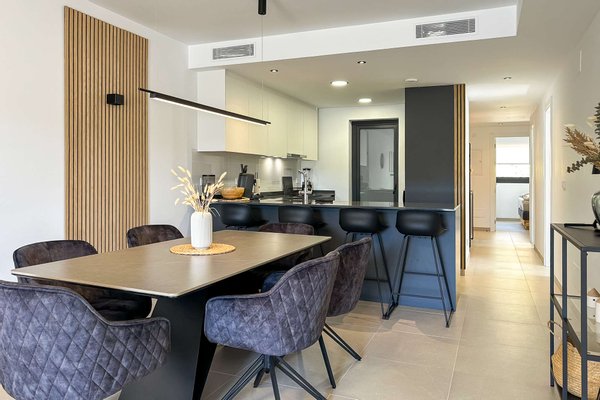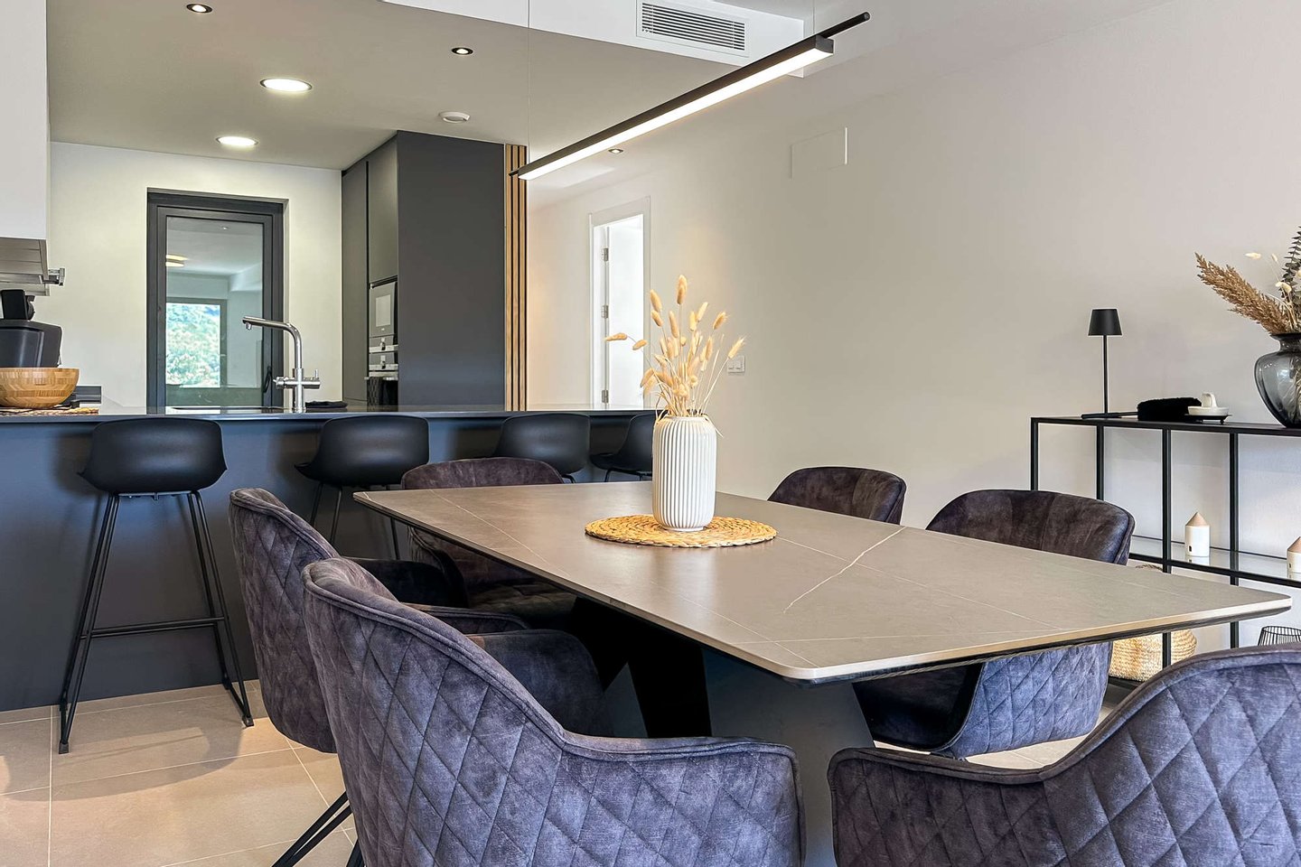 Bequem über den Tiefgaragenstellplatz mit seinem praktischen Abstellraum, erreichen Sie per Treppe oder Aufzug diesen stilvollen Wohntraum. Das Herzstück der Wohnung bildet die offene Küche, die mit einem eleganten Tresen ausgestattet ist. Hier können Sie nicht nur köstliche Mahlzeiten zubereiten, sondern auch gesellige Abende mit Familie und Freunden genießen. Der Wohn- Essbereich bietet einen herrlichen Blick auf die umliegenden Berge und ins Grüne, was die Wohnung zu einem besonderen Erlebnis macht und für eine angenehme, natürliche Lichtstimmung sorgt.