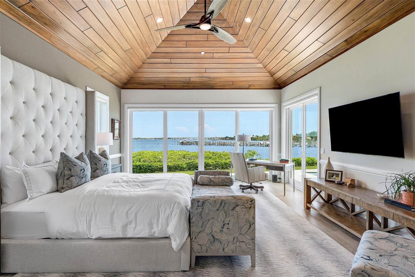 Entdecken Sie Le Lucienne im unvergleichlichen Floridian National Golf Club. Atemberaubender Blick auf den St. Lucie River mit direktem Zugang zum Meer. Dieses makellose maßgeschneiderte Wohnhaus verfügt über hohe Decken, reichlich Tageslicht und